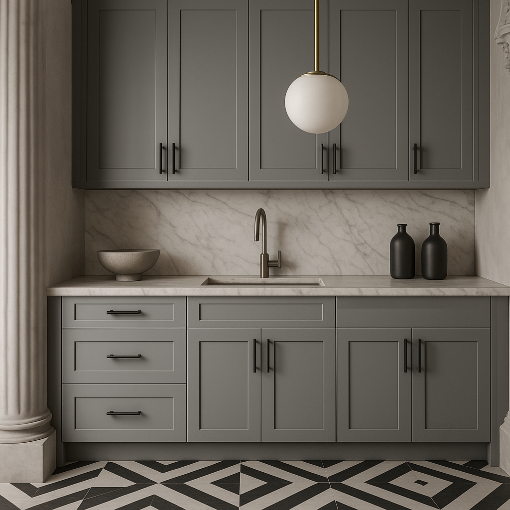 Upgrade your kitchen with the durable and stylish Richmond Vesuvius Gray Sink Base Cabinet today!