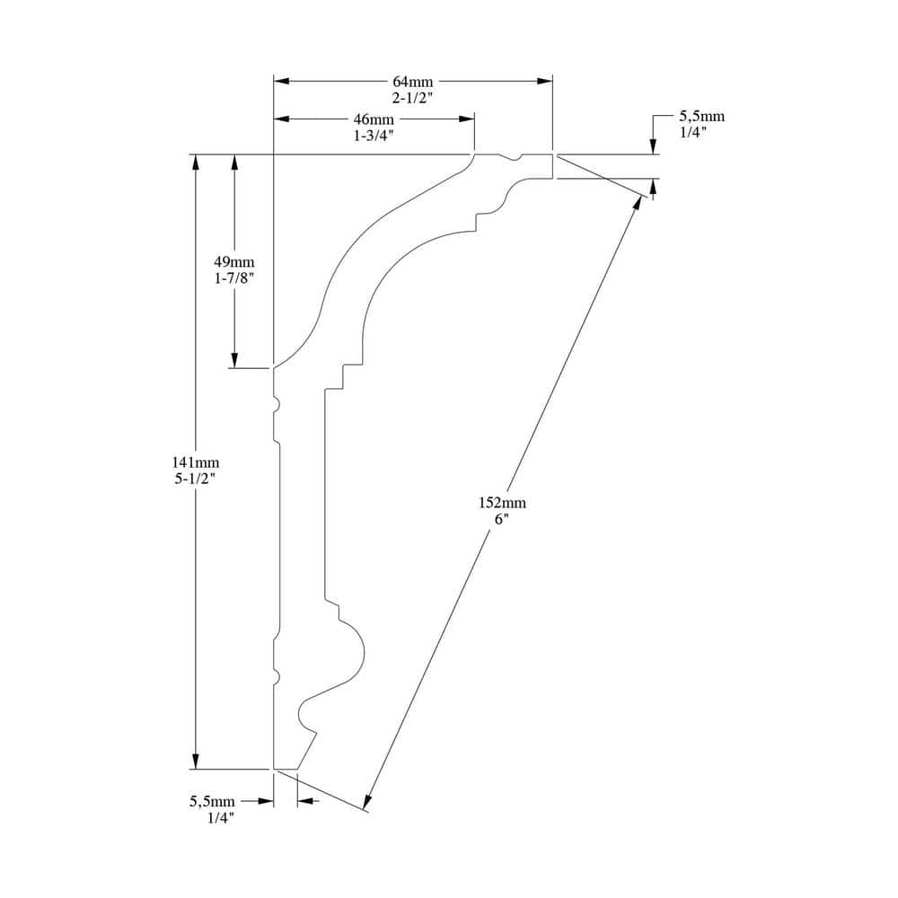 ORAC DECOR 2-1/2 in. x 5-1/2 in. x 78-3/4 in. Primed White Plain Polyurethane Crown Moulding (7-Pack)