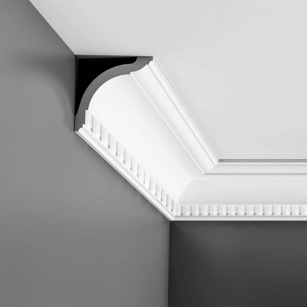 Transform any space with ORAC DECOR's Dentil High-Impact Polystyrene Crown Moulding. This lightweight yet durable moulding offers classic European design without the hassle of complex installations, thanks to its high-density polystyrene construction. Perfect for high-humidity areas, it’s primed and ready to paint, making it an ideal choice for both new constructions and renovations.