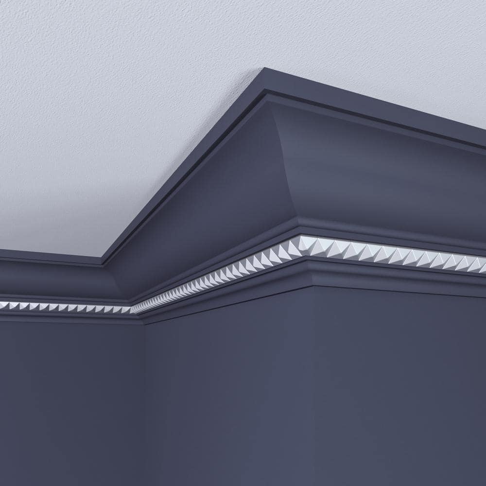 Elevate your interior design with the Ornamental Mouldings Haute Silver Pyramid Crown Moulding. This exquisite moulding features a primed finish for easy painting and a refined silver pyramid insert, perfect for adding a touch of sophistication to any room. Ideal for defining spaces with elegance and a modern flair.