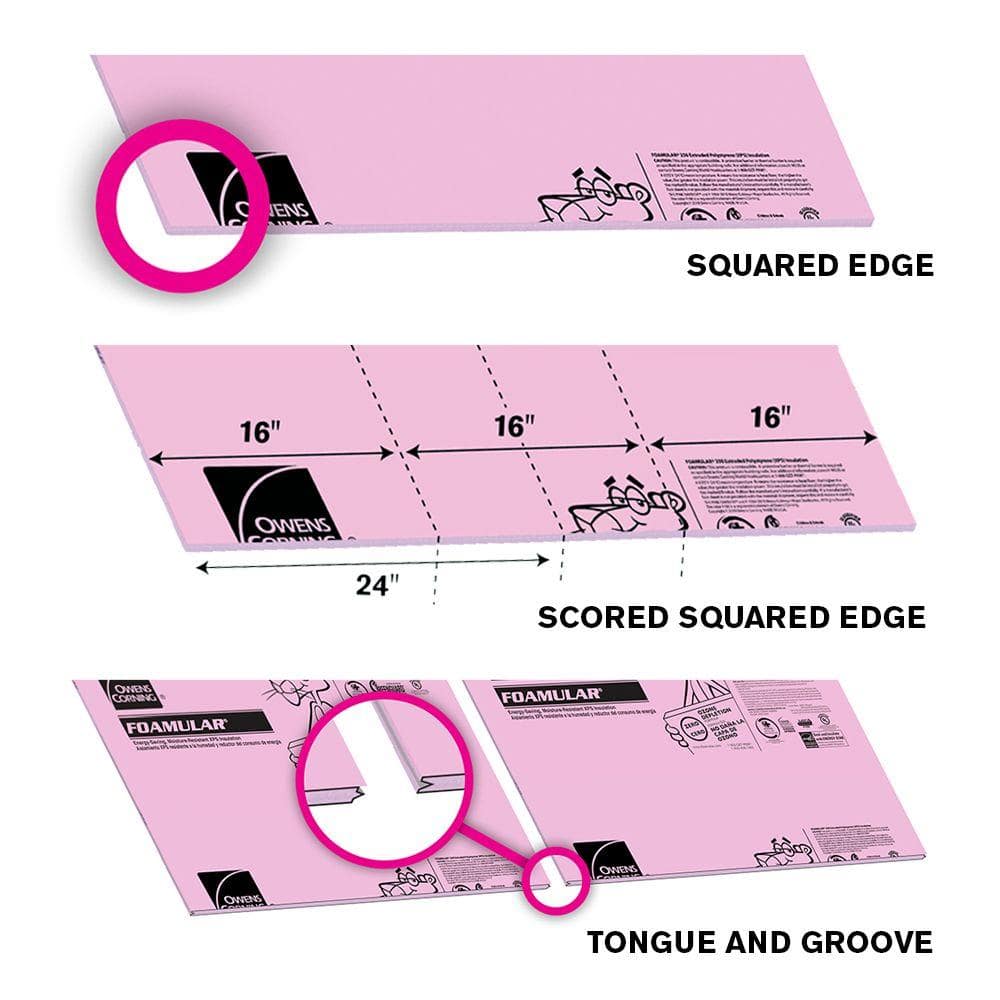 Owens Corning R-7.5 (25 PSI) FOAMULAR Extruded Polystyrene Foam Board Insulation, 1-1/2 in. x 4 ft. x 8 ft., Tongue & Groove Edge