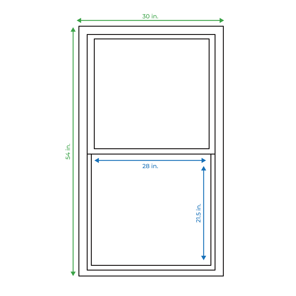• Standard Sizing: Actual 30-in x 54-in with 30-1/4-in x 54-1/4-in rough opening fits most replacements