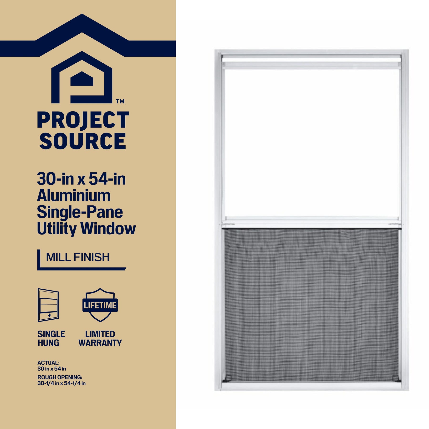 Project Source 40000 Series Replacement 30-in x 54-in x 1-3/4-in Jamb Silver Aluminum Single-Pane Single-Hung Window, Half Screen Included