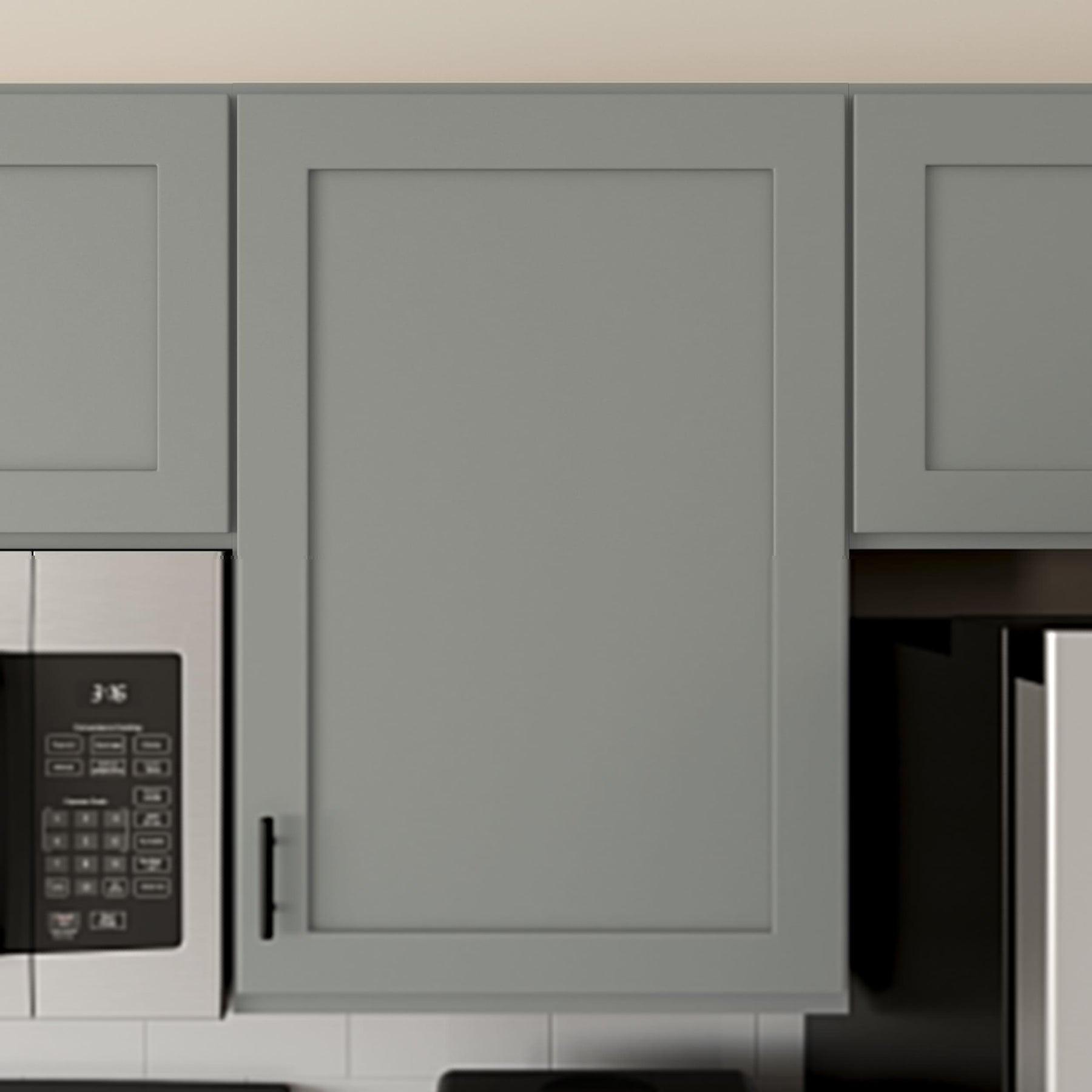 Transform your space with the RELIABILT Overlake wall cabinet, boasting a contemporary recessed panel shaker style in a chic matte gray finish. Crafted from robust plywood, this easy-to-assemble cabinet features adjustable shelves and soft-close hinges, blending durability with style and functionality.