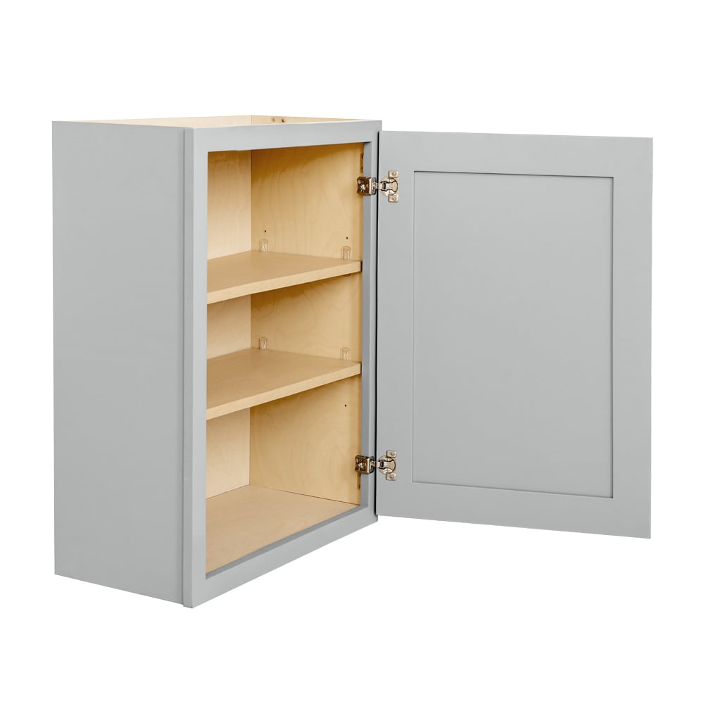 Elevate your space with the RELIABILT Overlake Shaker Wall Cabinet, a sophisticated storage solution that combines durability with chic design. Crafted from all-plywood, this cabinet features a matte gray finish and a practical full overlay, recessed panel construction that suits transitional home styles.