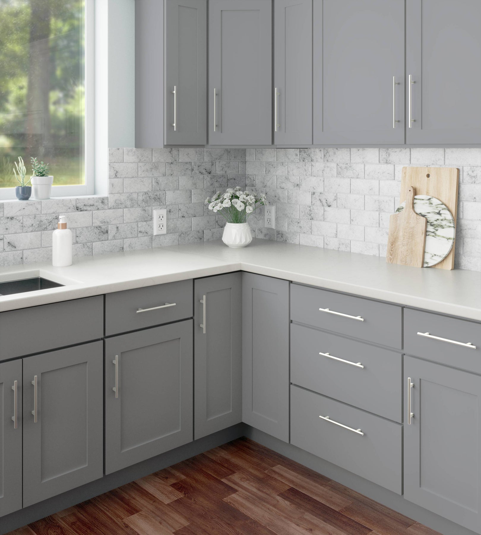Elevate your space with the RELIABILT Gray Shaker Wall Cabinet and experience effortless style paired with functional excellence.