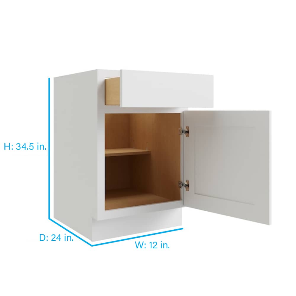 RELIABILT Parkstone 12-in W x 34.5-in H x 24-in D White 1-Drawer Base Fully Assembled Plywood Cabinet (Flat Panel Shaker Style)