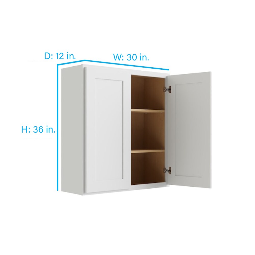 RELIABILT Parkstone 30-in W x 36-in H x 12-in D White Wall Fully Assembled Plywood Cabinet (Shaker Door Style)