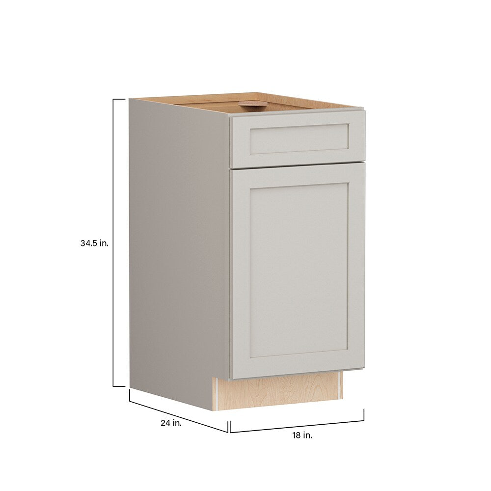 Upgrade your kitchen or bath with the Shenandoah PRO Express Breckenridge 18" Base Cabinet. This fully assembled Shaker-style cabinet offers exceptional durability with its all-plywood construction and soft-close features, a perfect match for any modern or transitional decor. Its sleek, full-overlay design and warm stone finish provide a versatile and stylish storage solution.