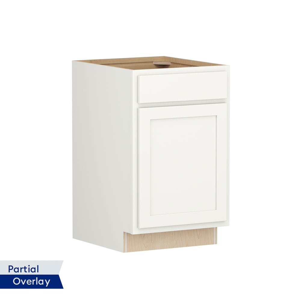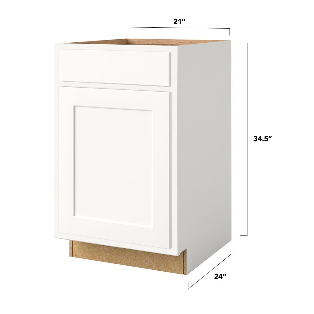 Upgrade your space with the Breckenridge Base Cabinet featuring a timeless Shaker style and a pristine painted linen finish. This 21-inch fully assembled cabinet offers seamless integration with any decor and unparalleled durability thanks to its all-plywood construction. Enjoy the benefits of soft-close technology, ensuring silent and effortless drawer and door operation.