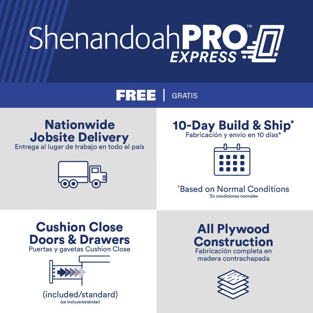 The Shenandoah PRO Breckenridge Linen Pantry Cabinet offers a perfect blend of style and utility, embodying modern elegance with its classic Shaker design. Expertly crafted with all plywood construction and a resilient, true painted finish, this cabinet ensures durability and a seamless look ideal for any kitchen or laundry space. Fully assembled and featuring soft-close technology, it provides a sophisticated and silent storage solution that is built to last.