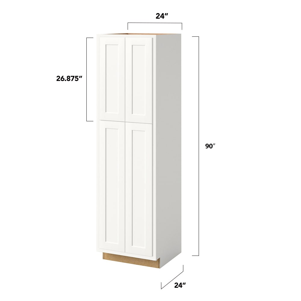 The Breckenridge Linen Pantry Cabinet from Shenandoah PRO Express is expertly crafted for durability and style. With a sleek recessed panel Shaker door style, this ready-to-install cabinet features a robust plywood construction and a flawless painted finish that fits seamlessly into any modern or farmhouse kitchen.