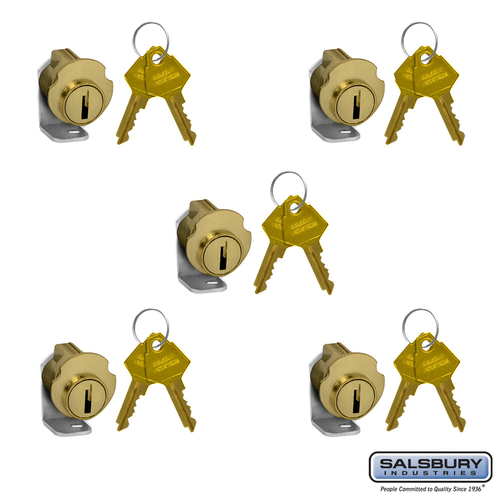 Standard Brass Mailbox Door Replacement Locks - 5 Pack