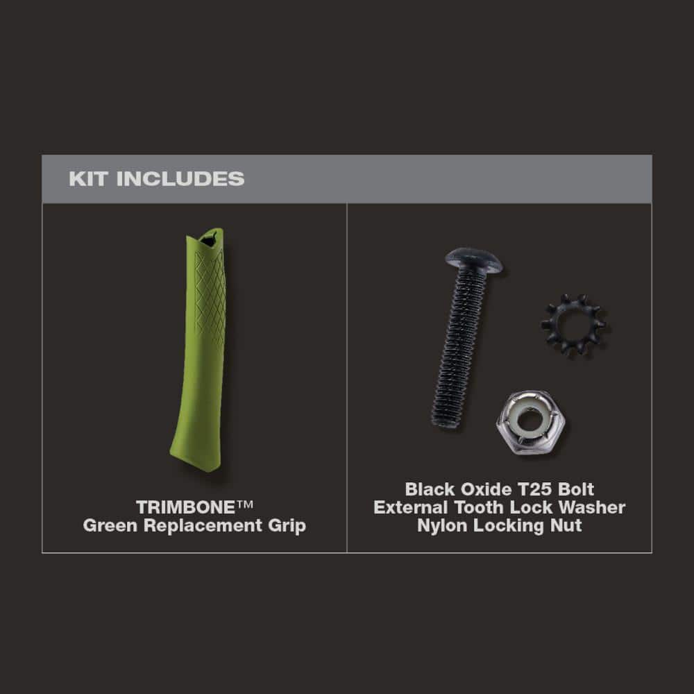 • Replaceable Grip: Equipped with a green TRIMBONE grip that is easy to install and enhances longevity on the jobsite.