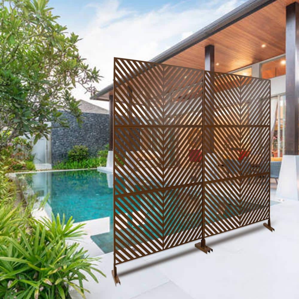 Elevate your indoor and outdoor spaces with Sudzendf's freestanding decorative privacy screen. Crafted from durable metal, this stylish brown panel offers both privacy and aesthetic appeal for gardens, patios, and rooms.