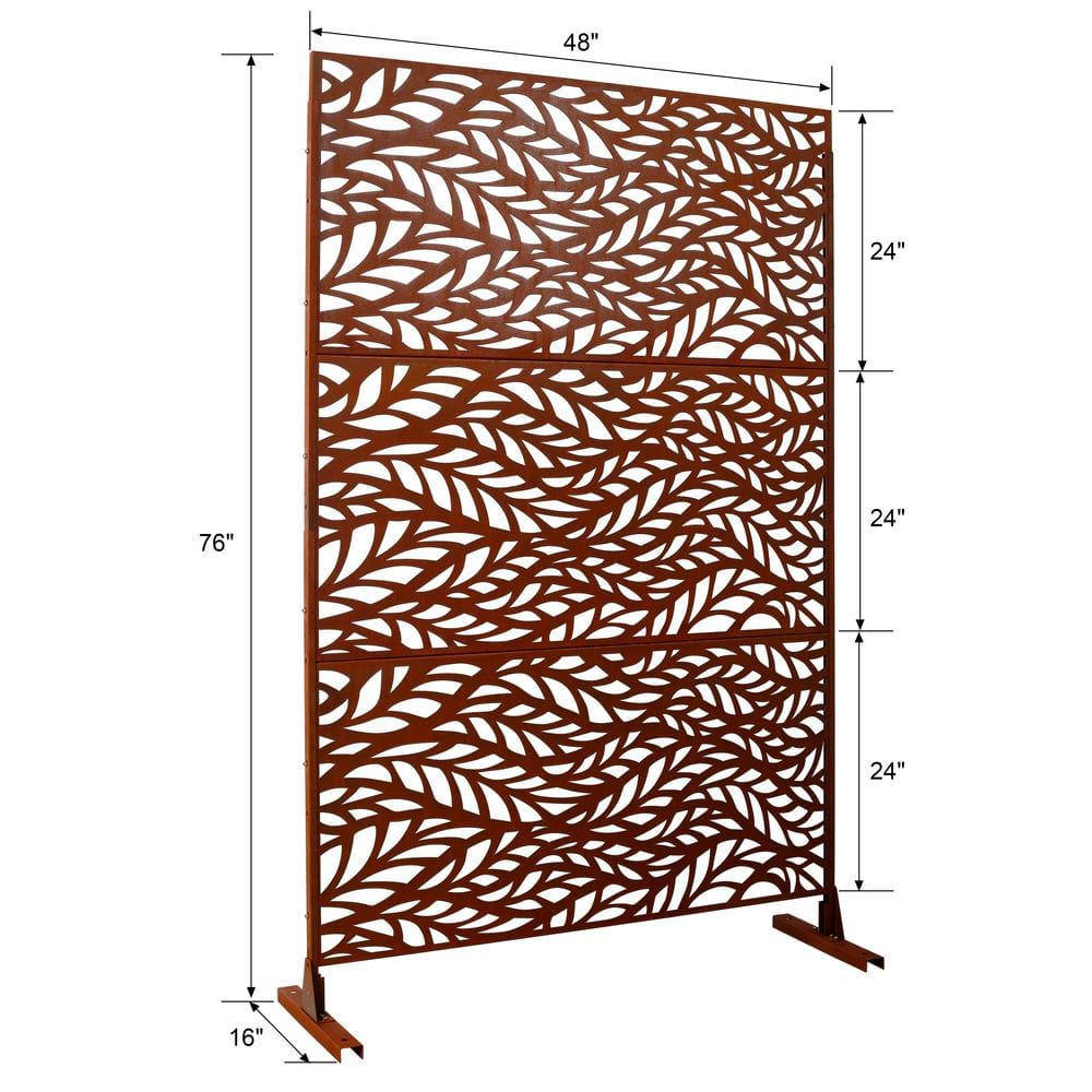 Sudzendf Outdoor and Indoor Freestanding Decorative Privacy Screen Metal Privacy Screen, Fence Panels in Brown