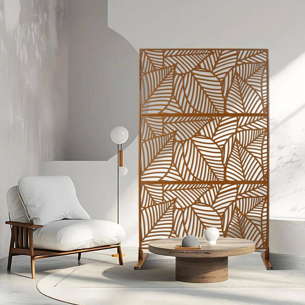 Elevate your space with Sudzendf's Freestanding Decorative Metal Privacy Screen, crafted to perfection for both indoor and outdoor environments. Made from durable metal, this elegant brown screen offers long-lasting privacy while enhancing your decor with its versatile design.