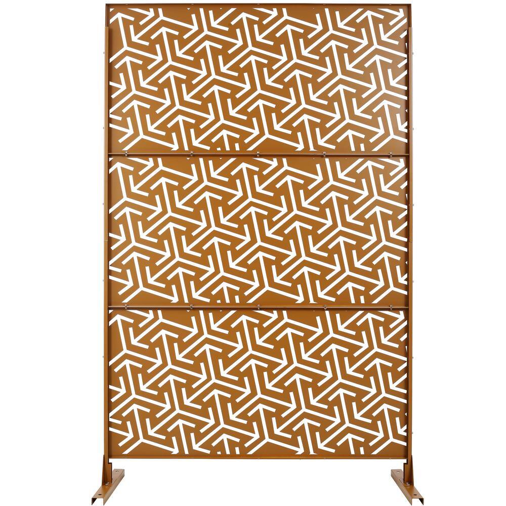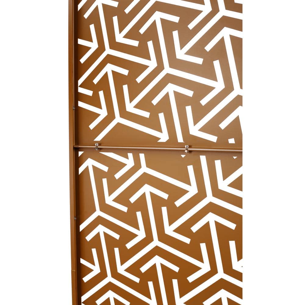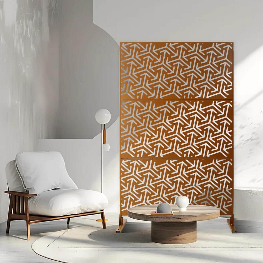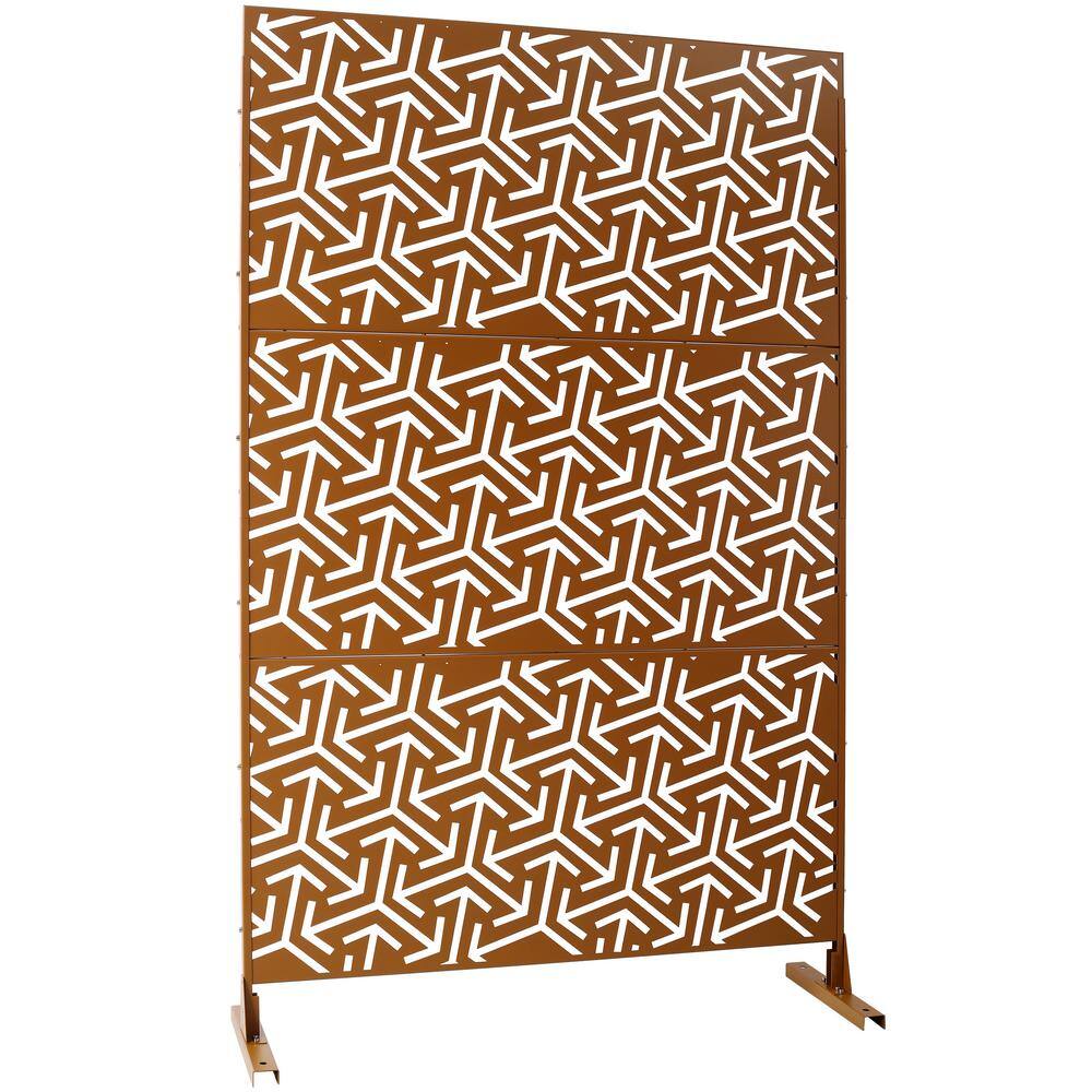 The Sudzendf Freestanding Metal Privacy Screen in Brown elevates both indoor and outdoor spaces with its high-quality, rust-resistant construction and timeless design. Ideal for creating secluded areas, this versatile privacy solution enhances any environment while adding an aesthetic element that can be customized with decorative accents.