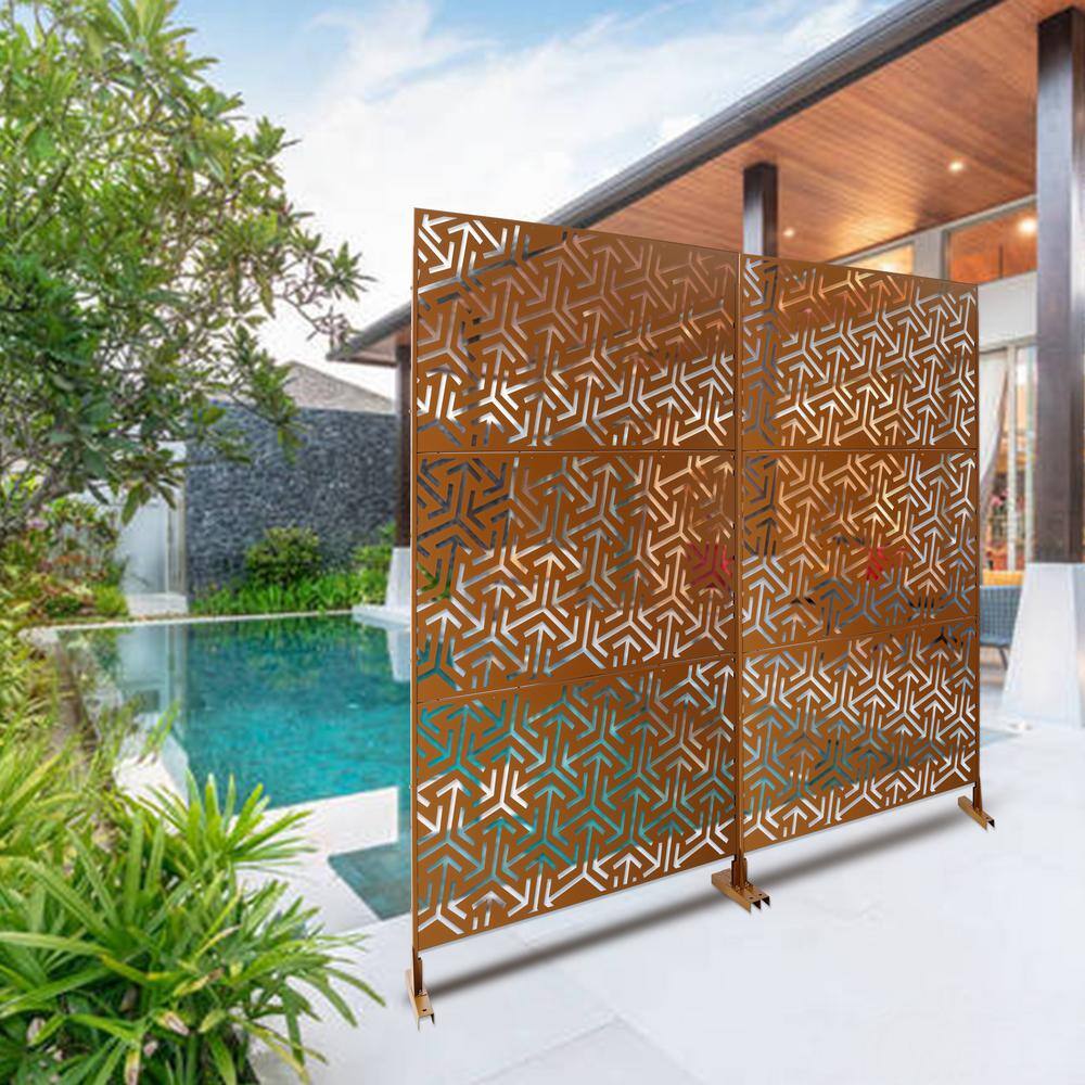 Sudzendf Outdoor and Indoor Freestanding Decorative Privacy Screen Metal Privacy Screen, Fence Panels in Brown