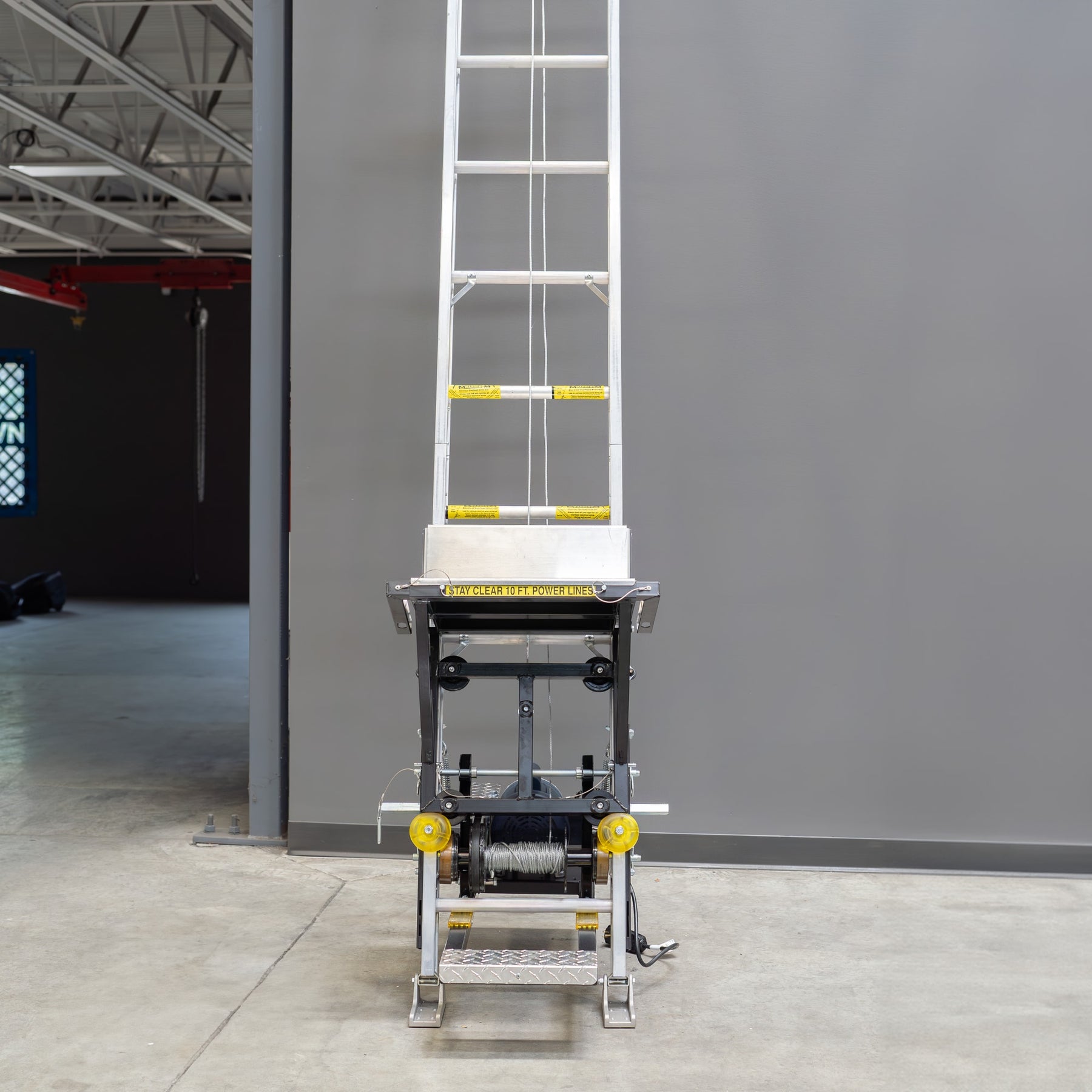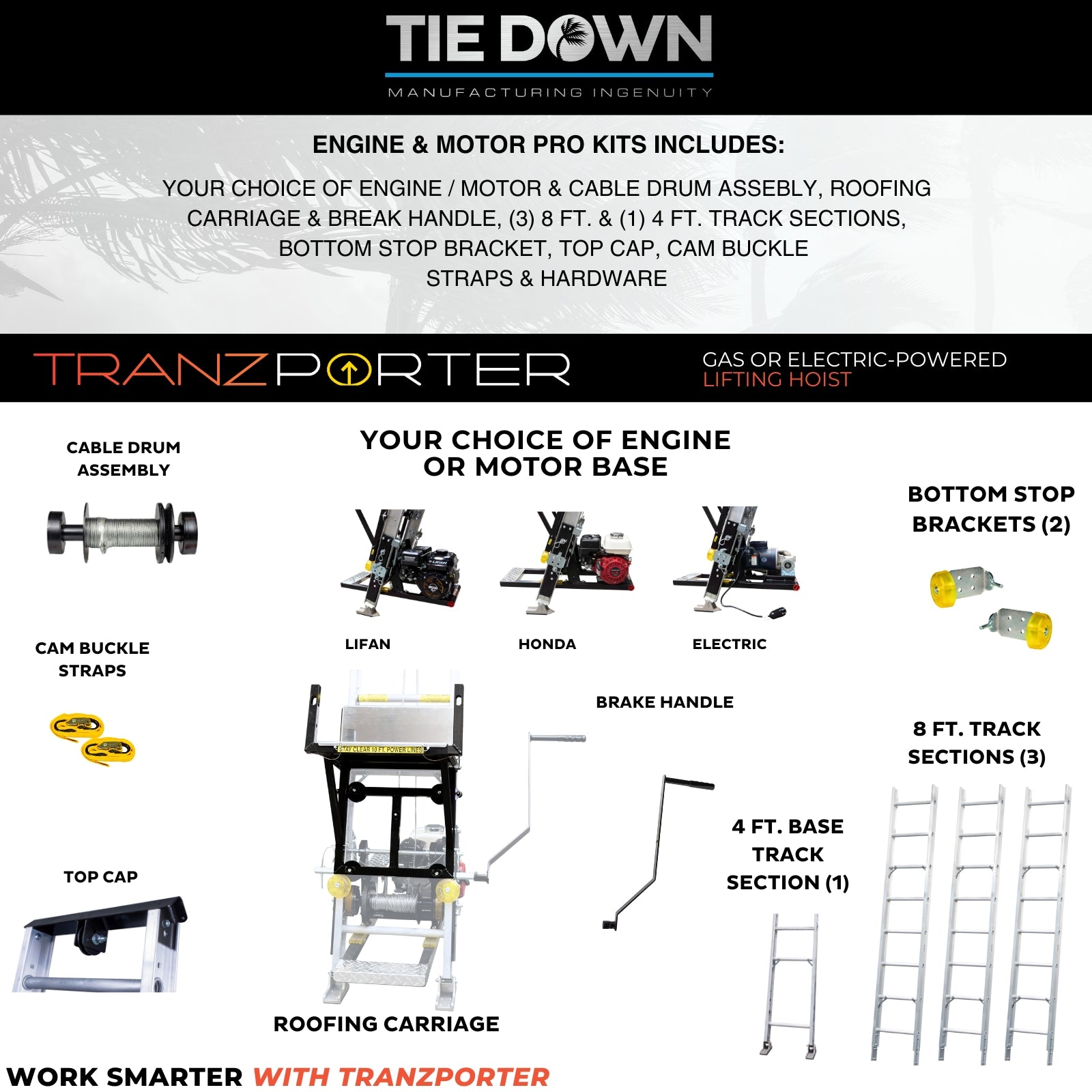 Tie Down TranzPorter TP400 Electric Motor Roofing Platform Ladder Hoist, 28-ft Track (44-ft Max with Extensions)