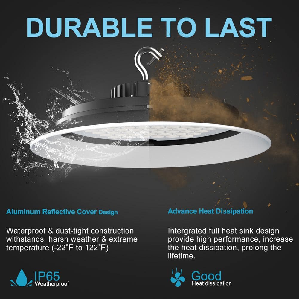 Illuminate large spaces with Bulbeats' 250W UFO LED High Bay Lights, delivering a powerful 37,500 lumens per unit. Designed for efficiency and longevity, these lights offer superior brightness and energy savings, ideal for commercial settings like warehouses and workshops. With a durable aluminum housing and an easy installation process, these lights ensure top-notch performance and reliability.