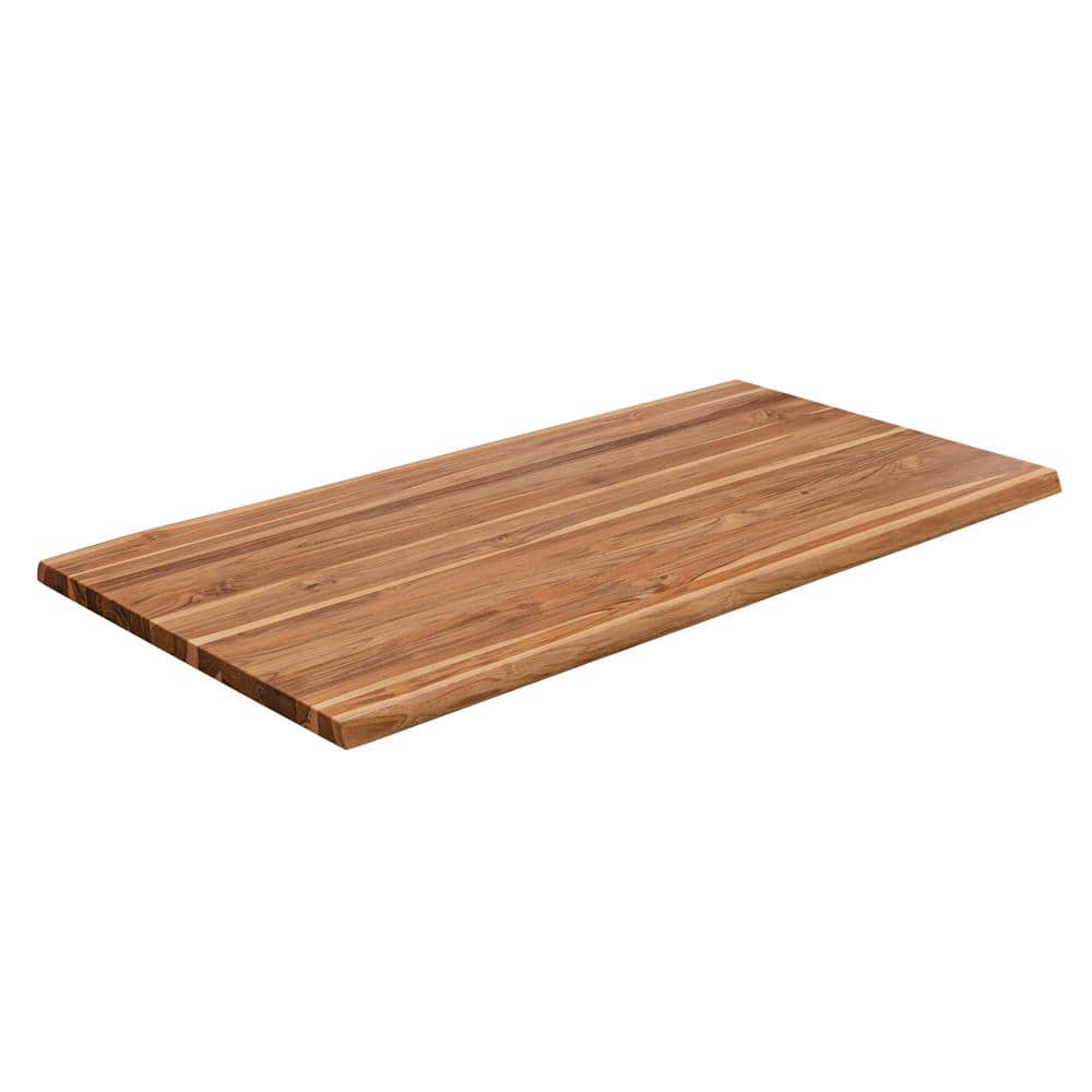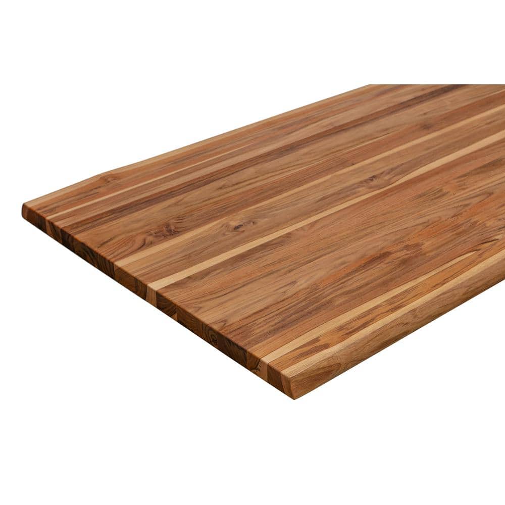 HARDWOOD REFLECTIONS 8 ft. L x 25 in. D Finished Teak Solid Wood Butcher Block Countertop With Live Edge