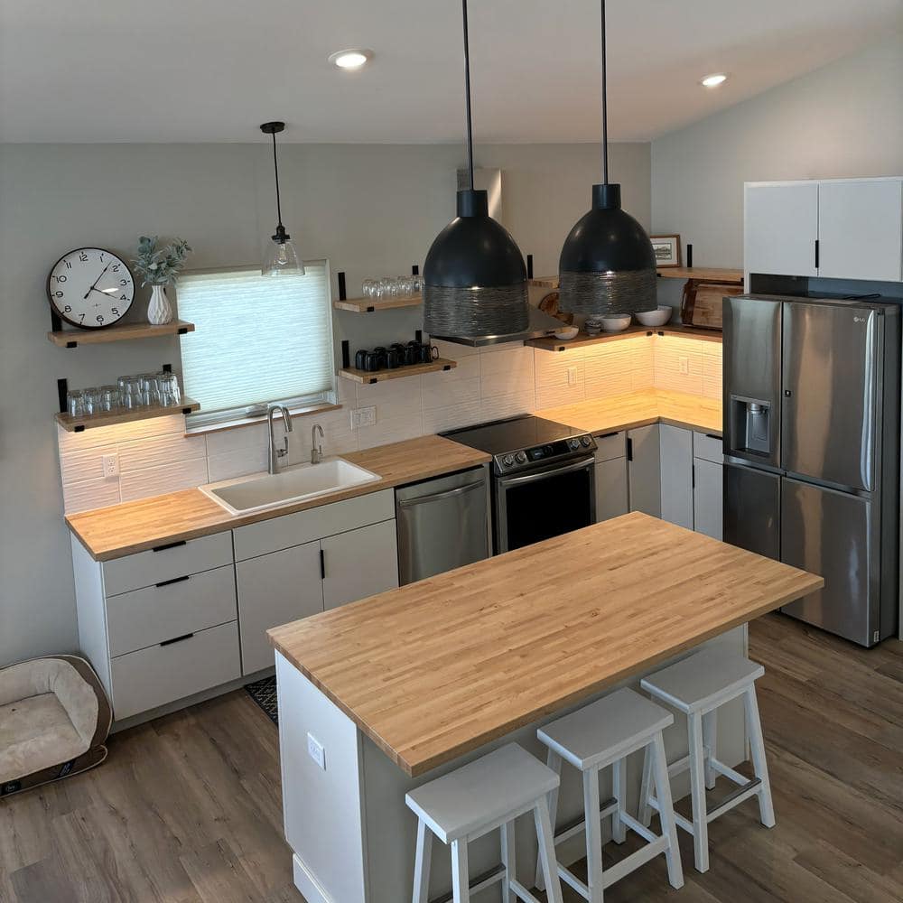 Transform your space with the timeless charm of an unfinished maple butcher block countertop. Its natural grain patterns whisper stories of the forest, bringing a warm and organic feel to any kitchen. Embrace its raw beauty by pairing it with sleek metallic fixtures or earthy tones to create a balance of luxury and simplicity. This versatile piece is not just a countertop; it’s a canvas for culinary artistry and a centerpiece of modern sophistication.