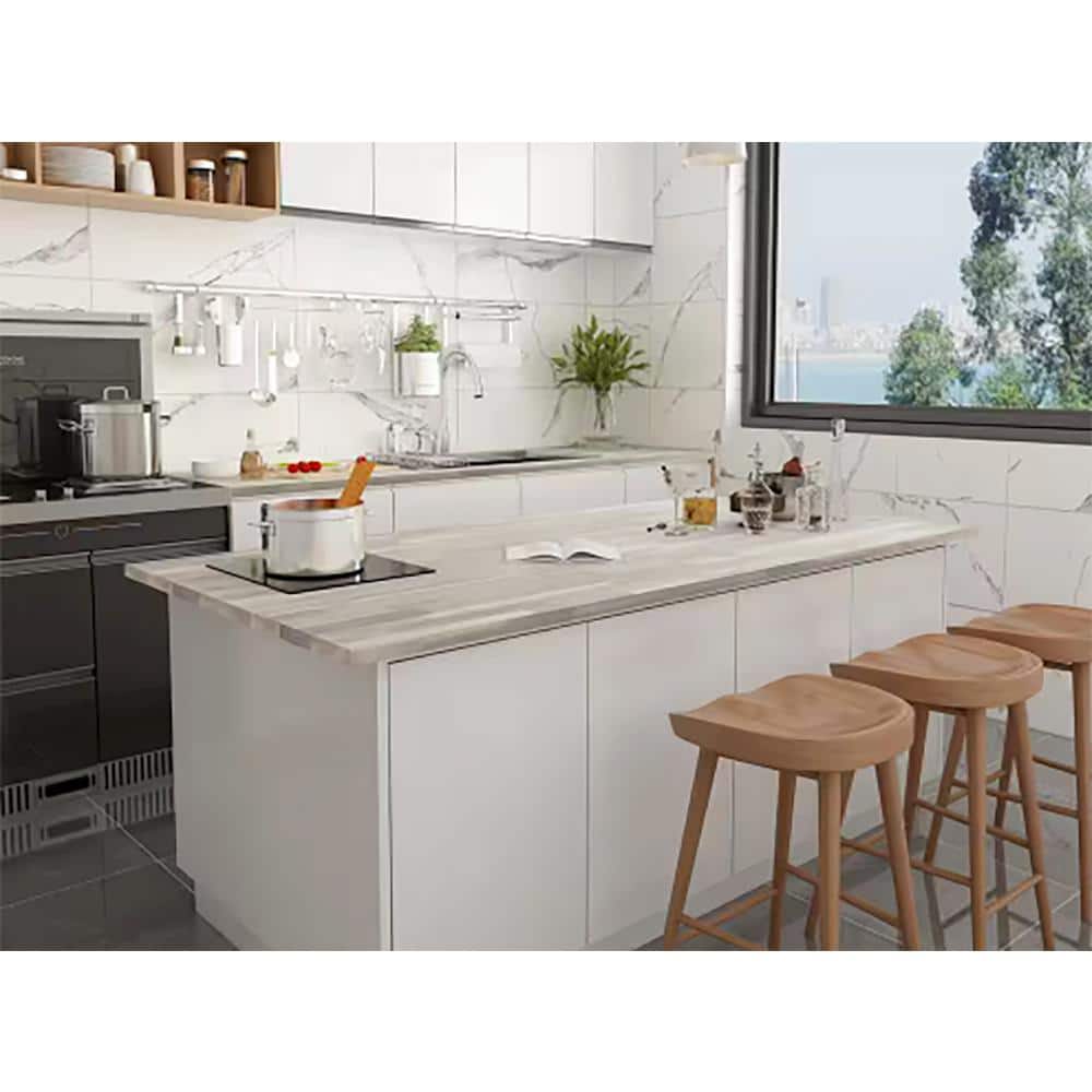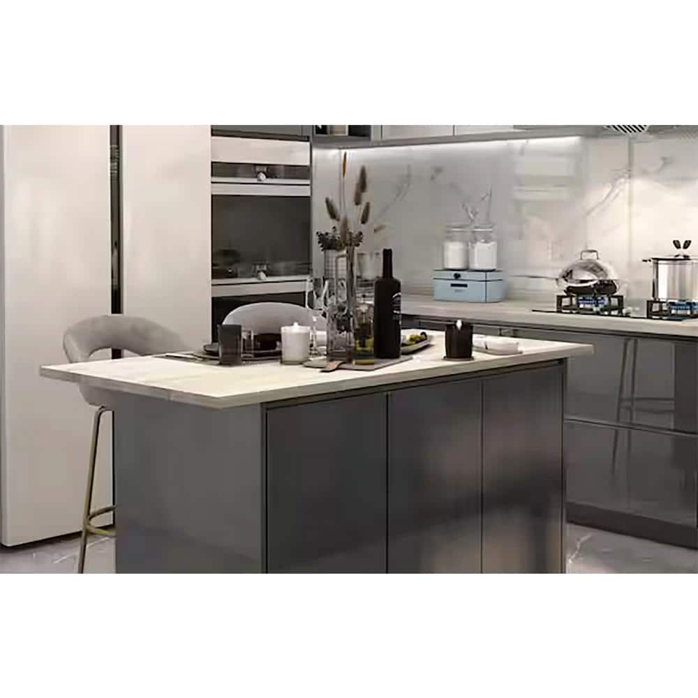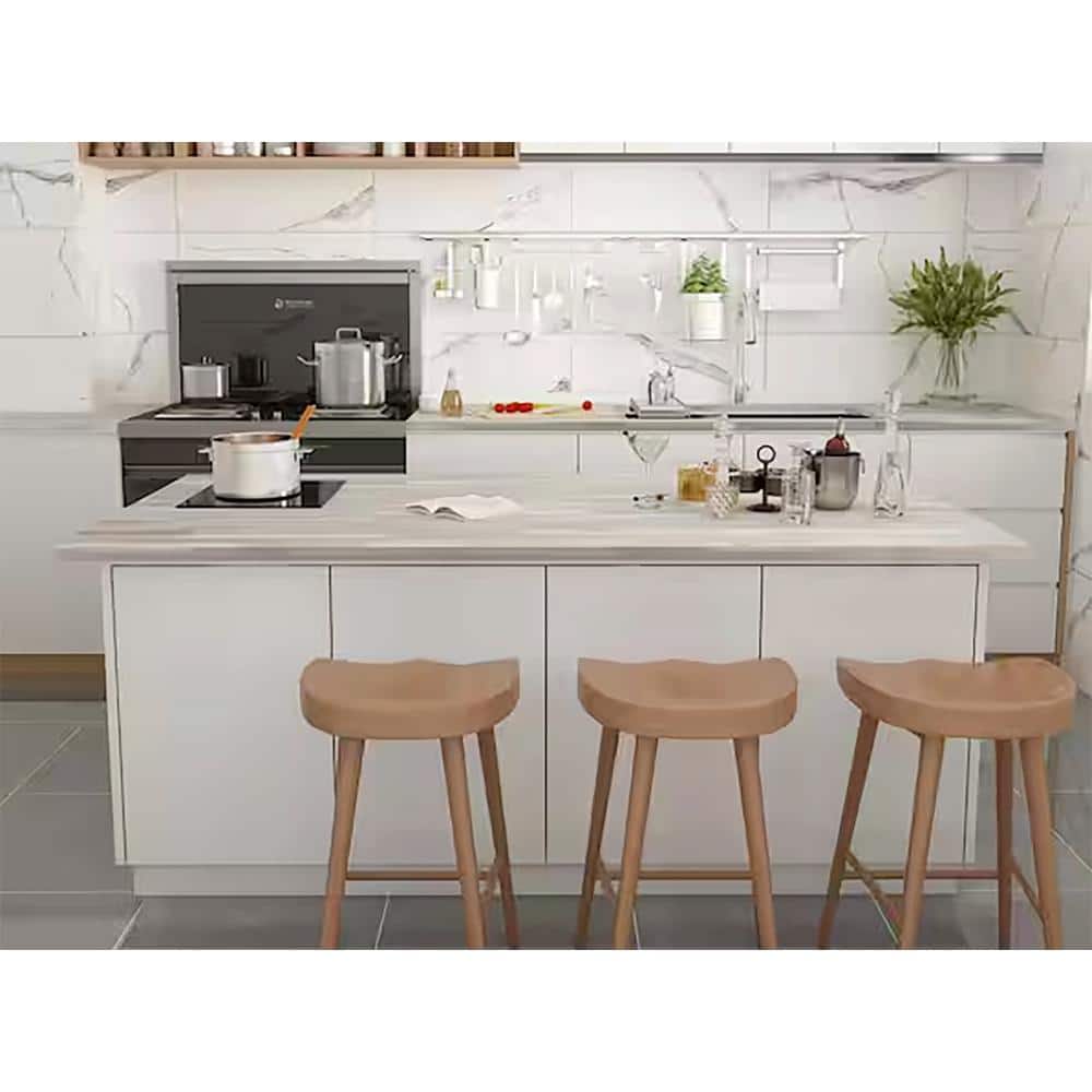 Embrace the timeless beauty of nature with the Interbuild Acacia Butcher Block Island Countertop. Its rich organic white finish accentuates the warm tones and rustic charm, elevating any kitchen to new heights of sophistication. Style it with sleek ceramic accents for a striking contrast or pair it with vintage metal fixtures for a harmonious blend. This countertop transforms your space, making it a sanctuary of comfort and style, an essential addition to bespoke culinary environments.