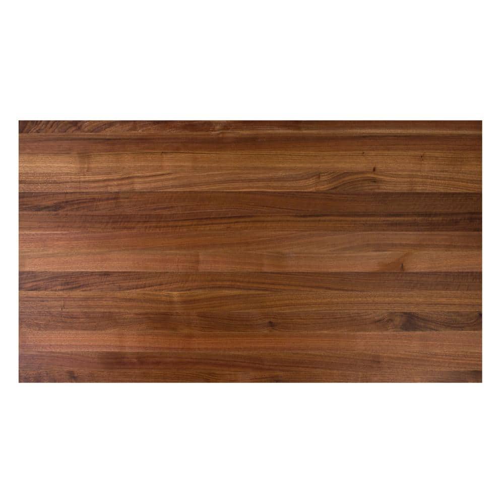 Elevate your space with the Swaner Hardwood Finished Walnut Butcher Block Countertop. Crafted from ultra-premium American walnut, this countertop boasts full-length rails and a protective semi-gloss polyurethane finish, ensuring a striking visual appeal and unmatched durability for any room in your home.