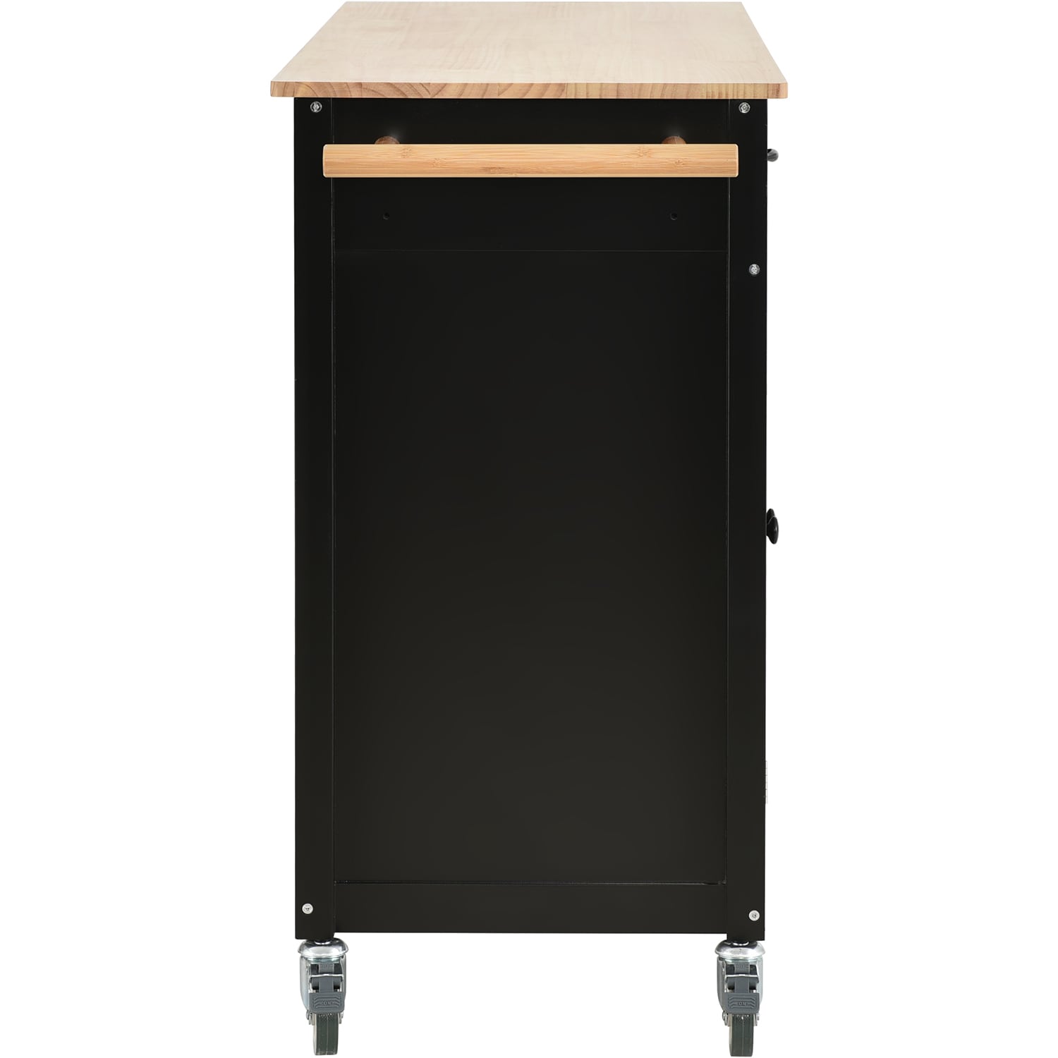 Bybafun Black Mdf Base with Wood Top Rolling Kitchen Cart (18.5-in x 54.33-in x 36.22-in)