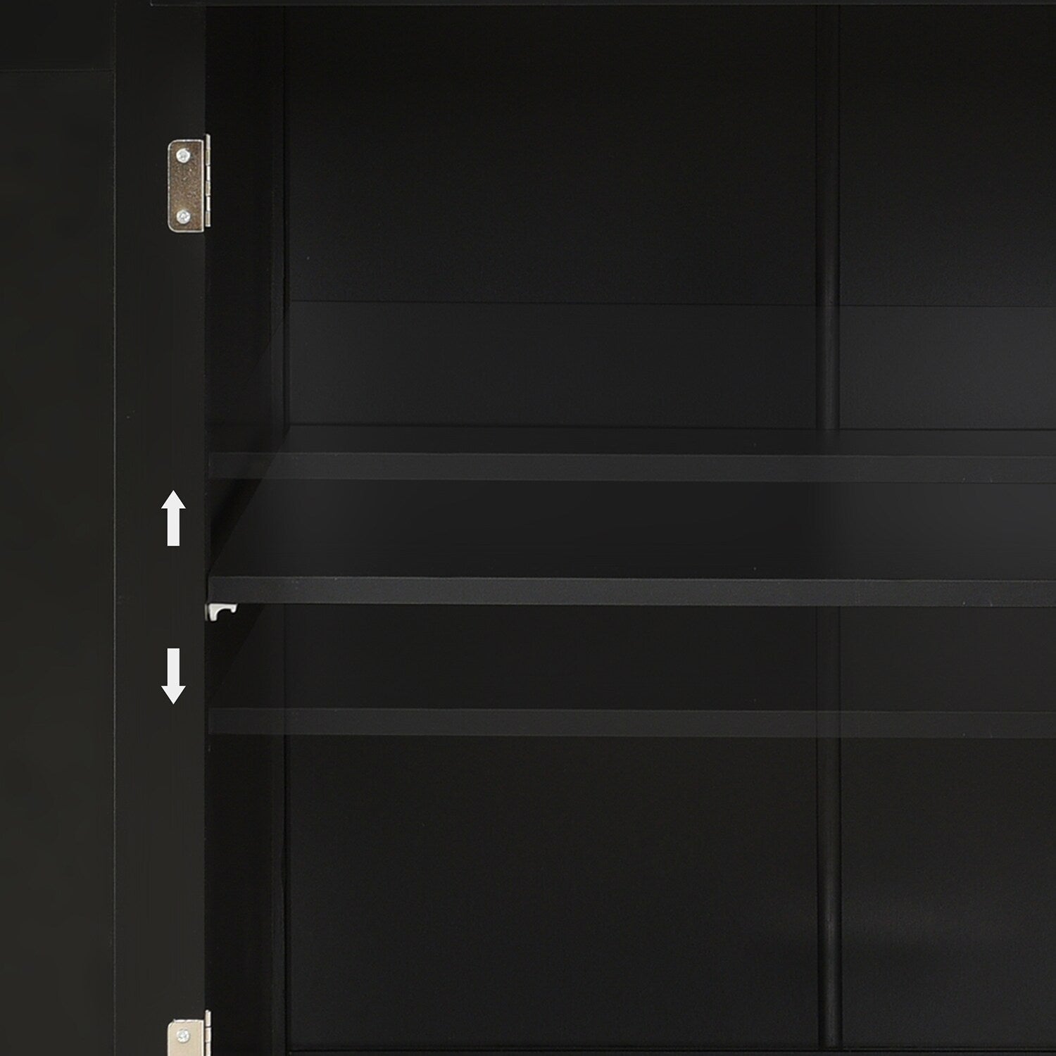 The Bybafun Black Rolling Kitchen Cart serves as an elegant island, redefining kitchen dynamics with its black MDF base and sleek wood top. Its standout feature is its graceful mobility, harmonizing style with function. Use this cart as a chic solution for spontaneous dinner prep, serving beverages at a soirée, or simply enhancing the kitchen’s vibe. This rolling cart, with its commanding presence, embodies the essence of luxury without sacrificing practicality.