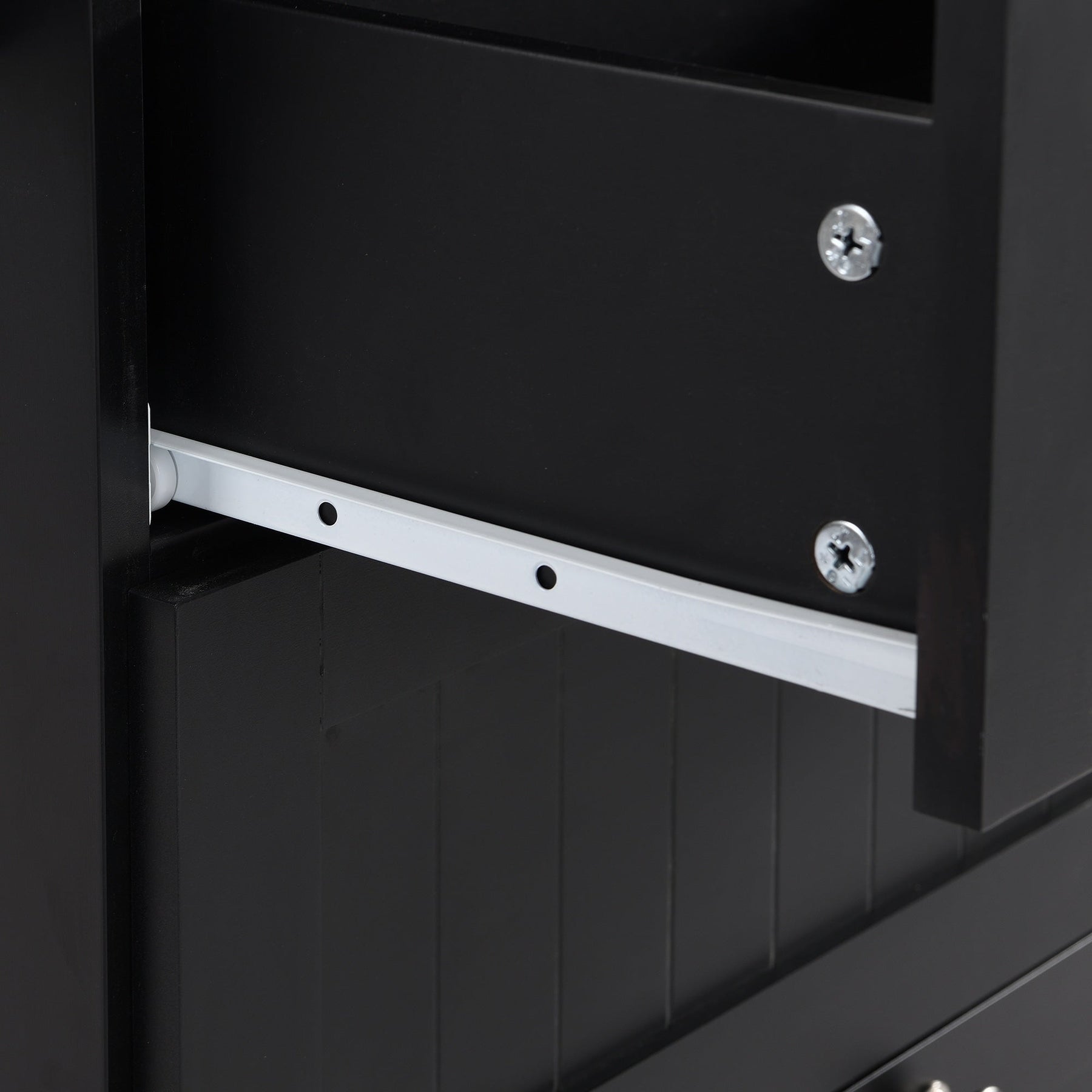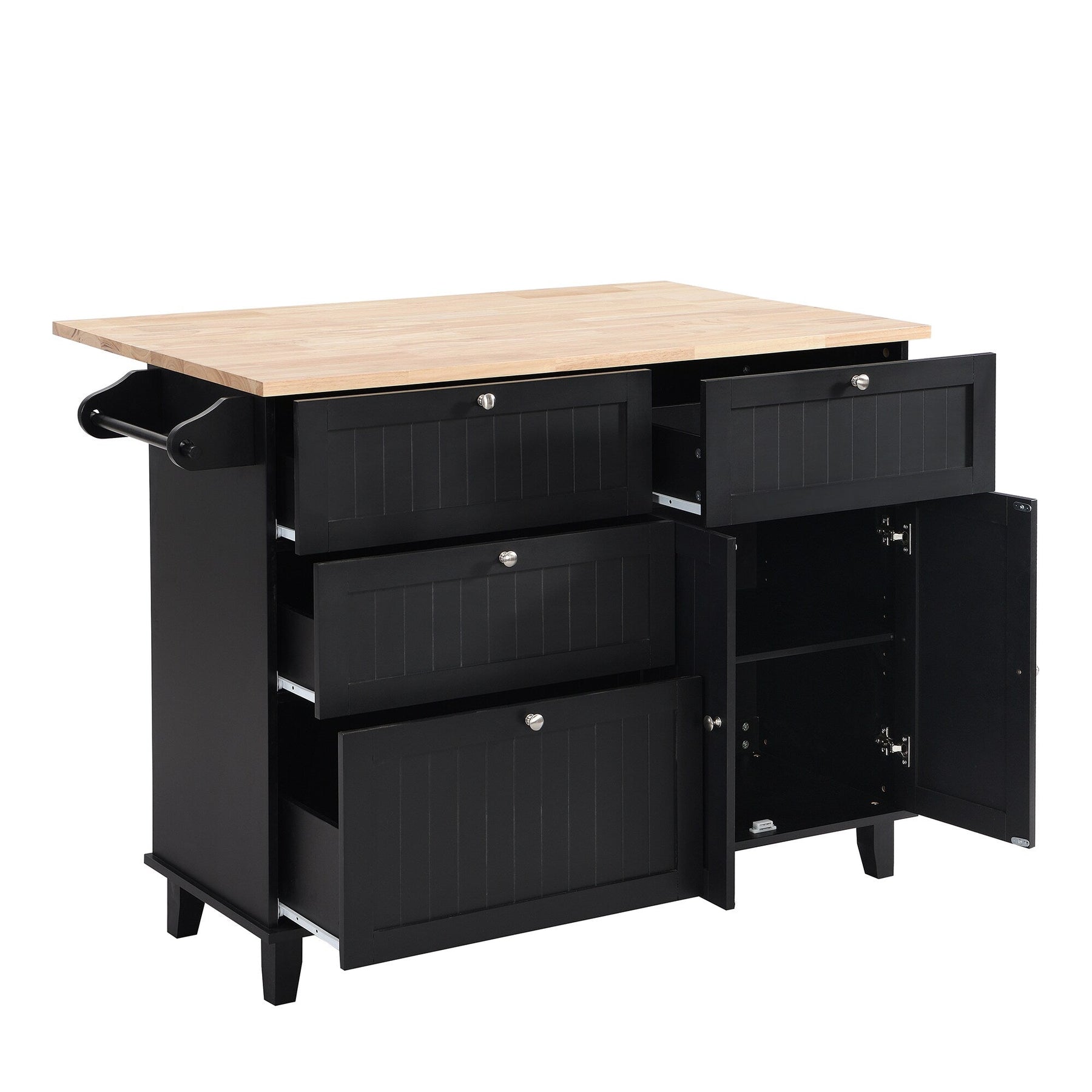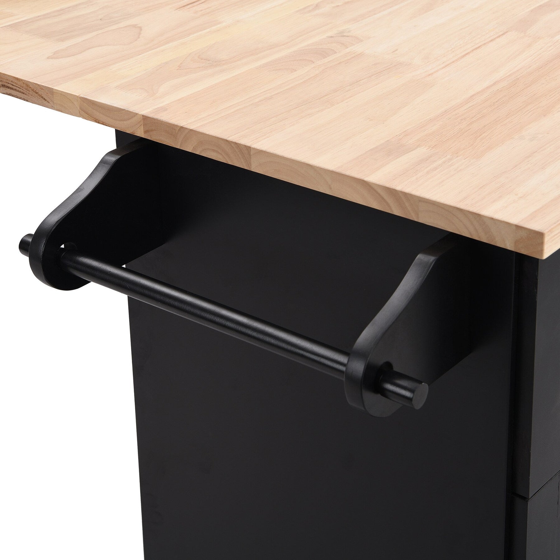 Bybafun Black Mdf Base with Wood Top Rolling Kitchen Island (29.5-in x 50.3-in x 36.6-in)