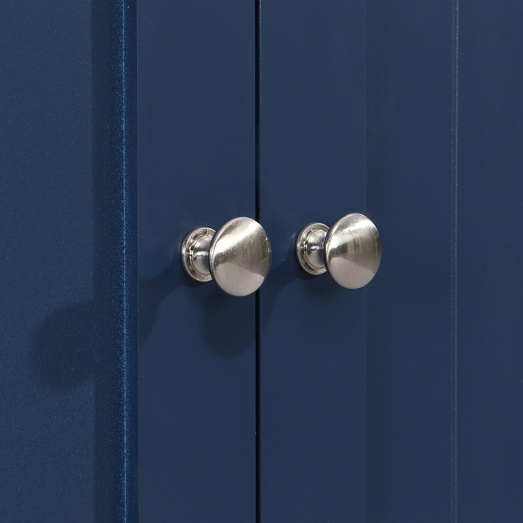 Introducing a versatile kitchen island featuring a vibrant blue MDF base and robust wood top, designed to meet both aesthetic and practical demands. With its rolling capabilities, generously-sized drop-leaf counter, and accompanying dining stools, this piece transforms your kitchen into an efficient and stylish culinary hub.
