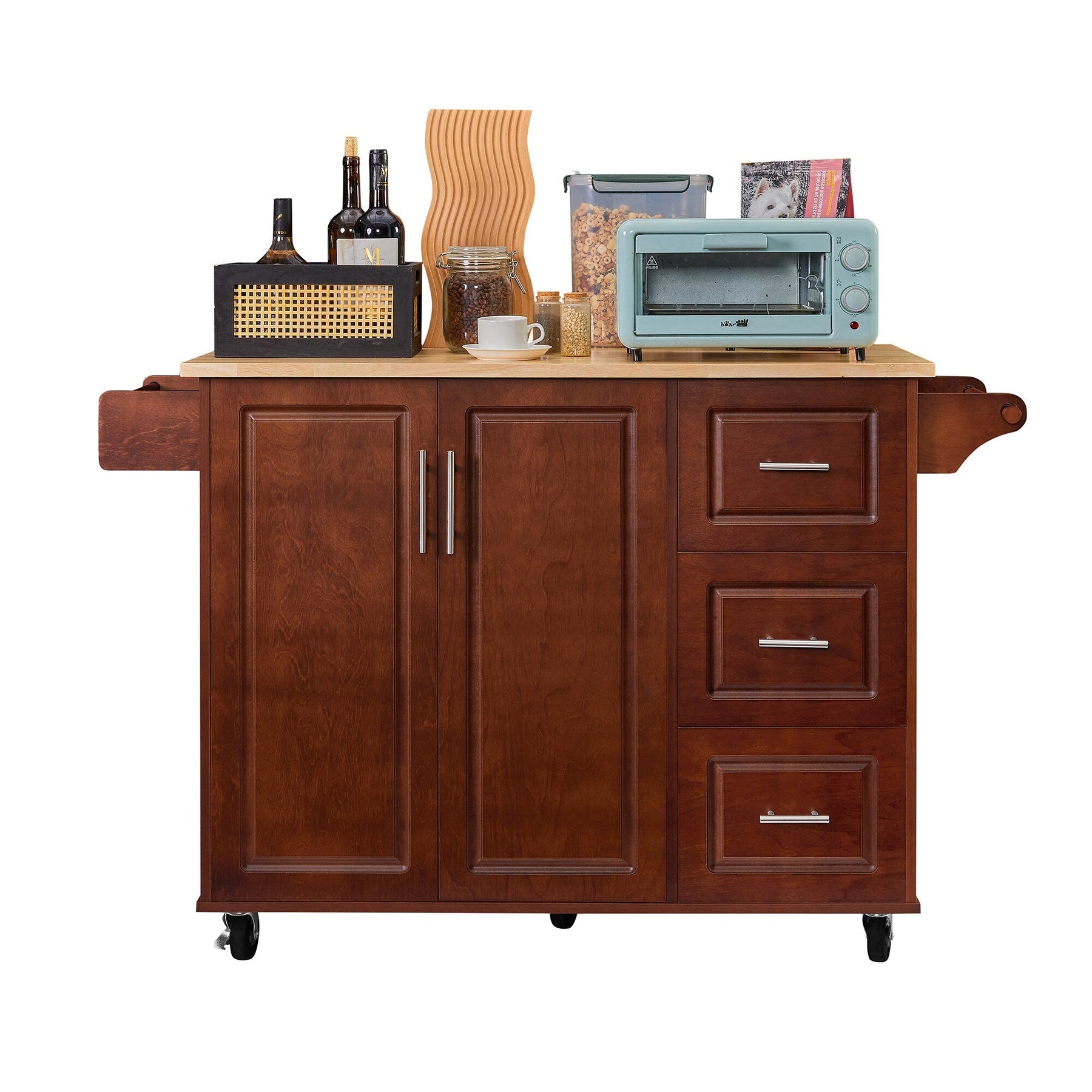 Bybafun Brown Mdf Base with Mdf Wood Top Rolling Kitchen Island (18.1-in x 53.8-in x 35.5-in)