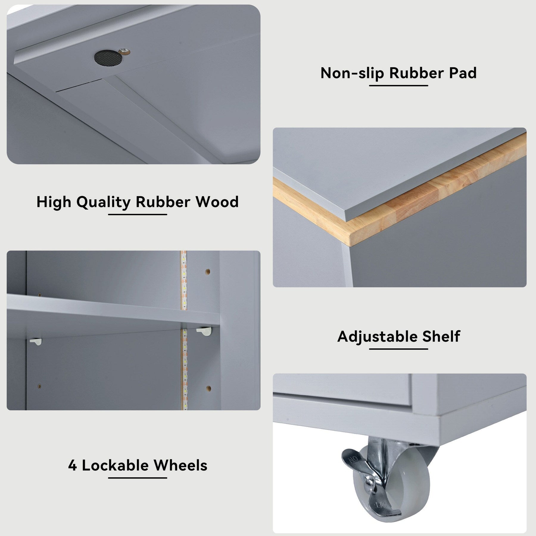 Bybafun Gray Rolling Kitchen Island with Fluted Glass