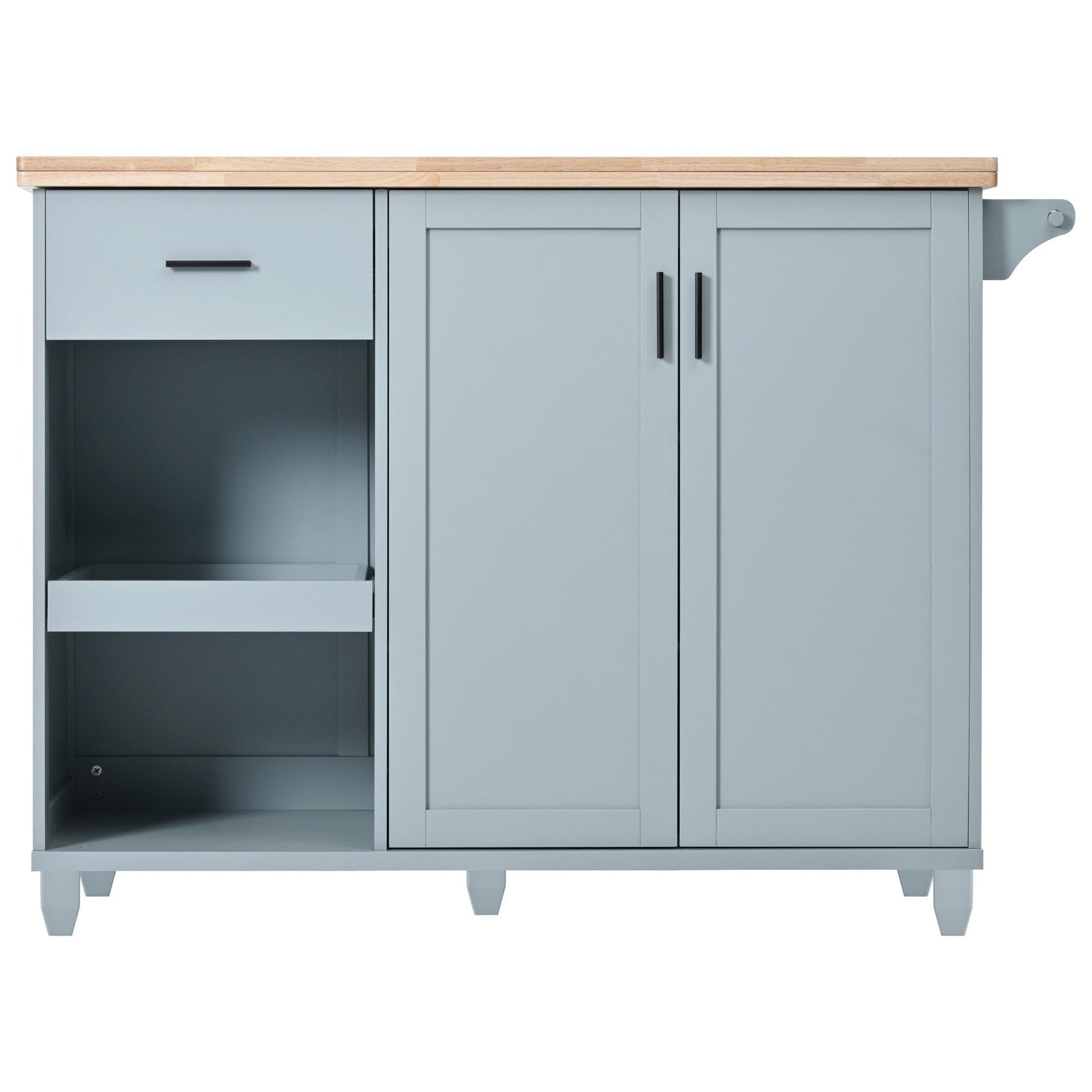 Gray MDF Rolling Kitchen Island with Expandable Top