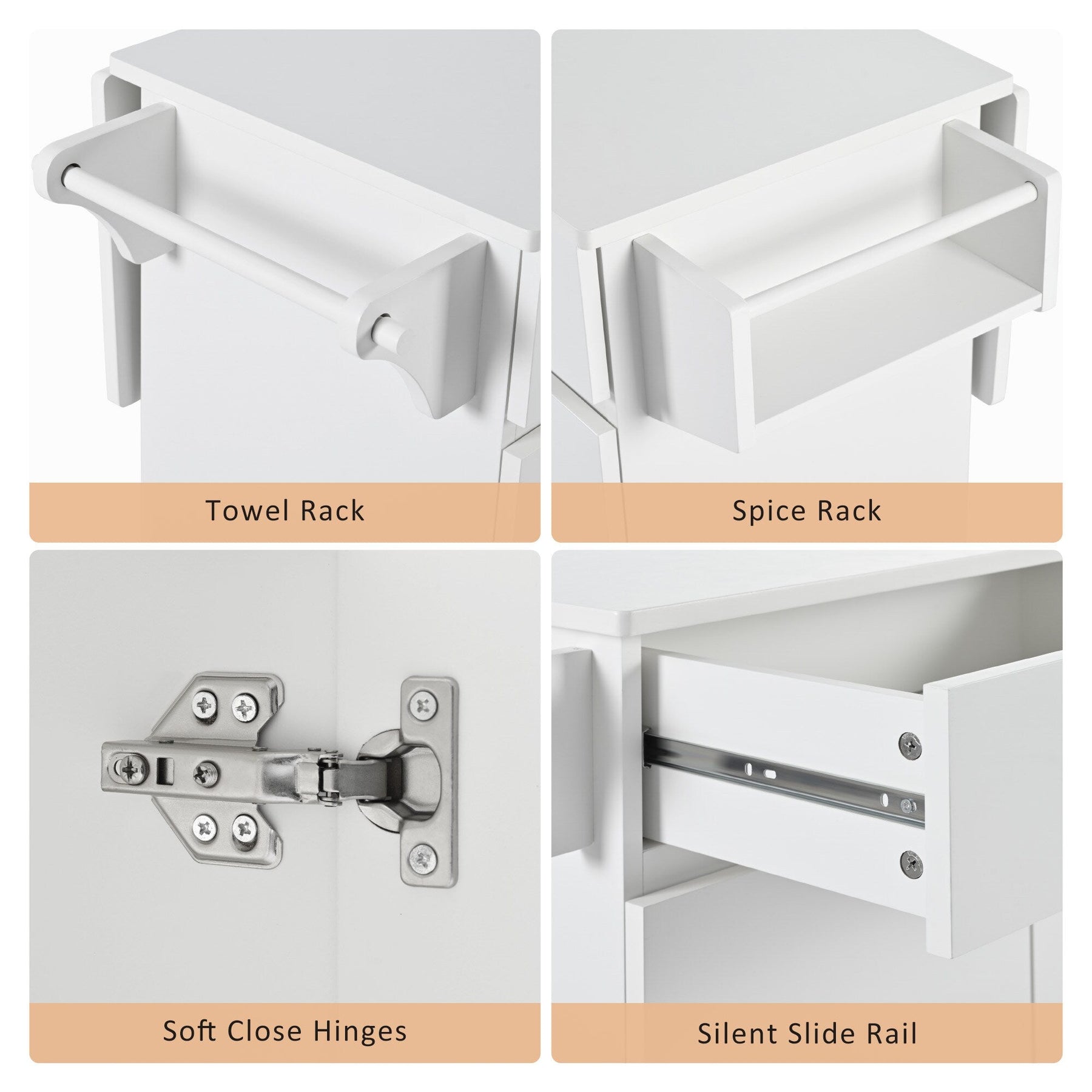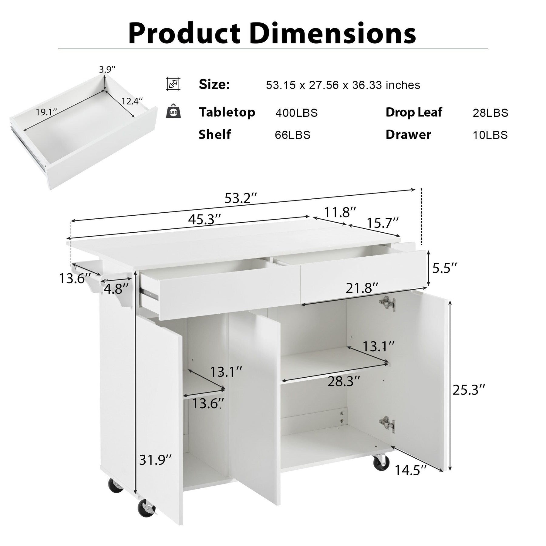 Bybafun White Mdf Base with Mdf Wood Top Rolling Kitchen Island (27.6-in x 53.2-in x 36.3-in)