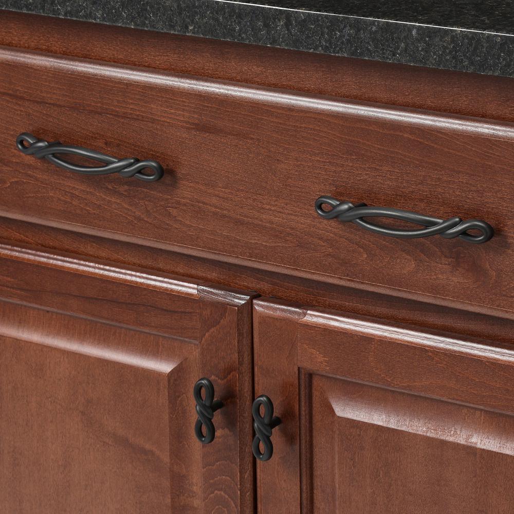 This eclectic pull showcasing a beautiful black iron finish is part of our French Twist family. The 3 in. center to center hole requirements make it a quick way to update your space. Coordinating pieces are available. Easy installation includes a standard 8-32 machine screw and usually requires only a screwdriver. This piece provides the perfect decorative touch for your home.