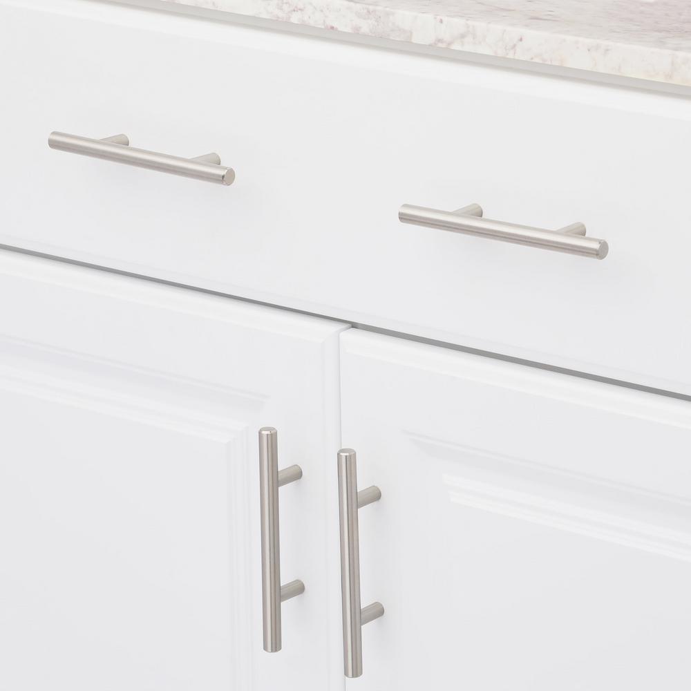 Update the looks of your kitchen cabinets with these sleek, European-styled Dynasty Hardware bar pulls. Their simple, elegant design complements traditional, transitional and contemporary decor. These cabinet pulls also work beautifully on bath storage cabinets, china cabinets and chests of drawers. Sturdy and comfortable to the grip, the solid steel pulls softly shine with a lovely satin nickel finish. Each pull features durable, 1-Piece construction and comes individually wrapped. Standard 8/32 in. x 1 in. machine screws are included for easy installation. Measuring 5-3/4 in. in L and 1-1/4 in. in H, these pulls are an ideal choice for kitchens with stainless steel appliances. Each set of cabinet hardware ships with 15 pulls per pack.