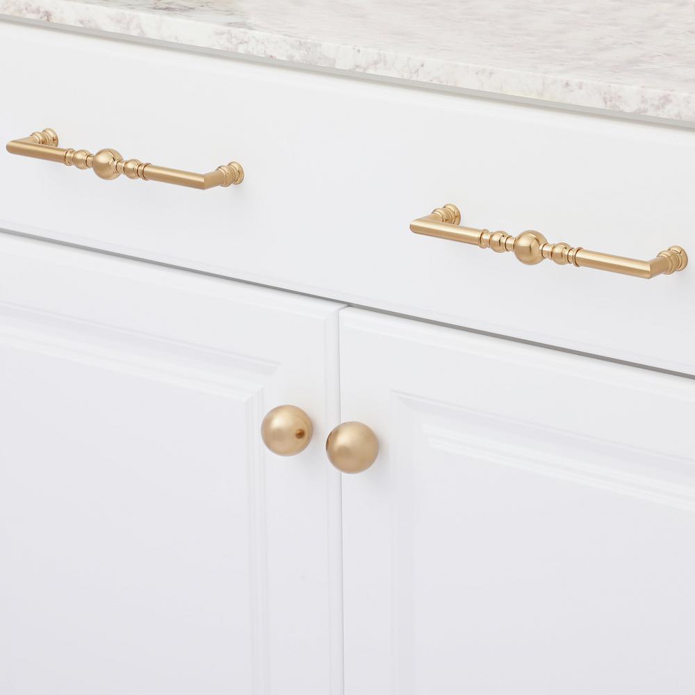 The symmetry of beads and rings along the handle of this classic pull will enhance the sophistication of any room. A pull designed with an elegant Champagne Bronze Finish. Easy rear-mount installation with included hardware.