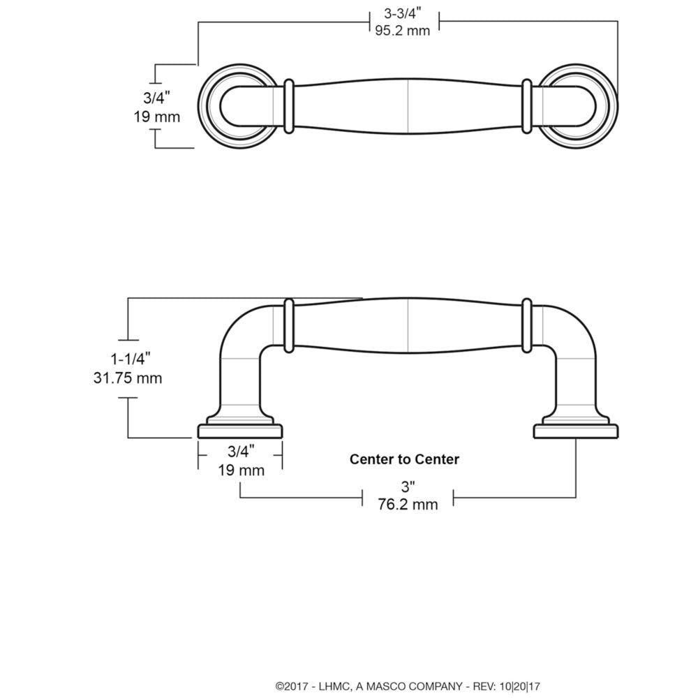 Center to Center Measurement (in.) 3 in.