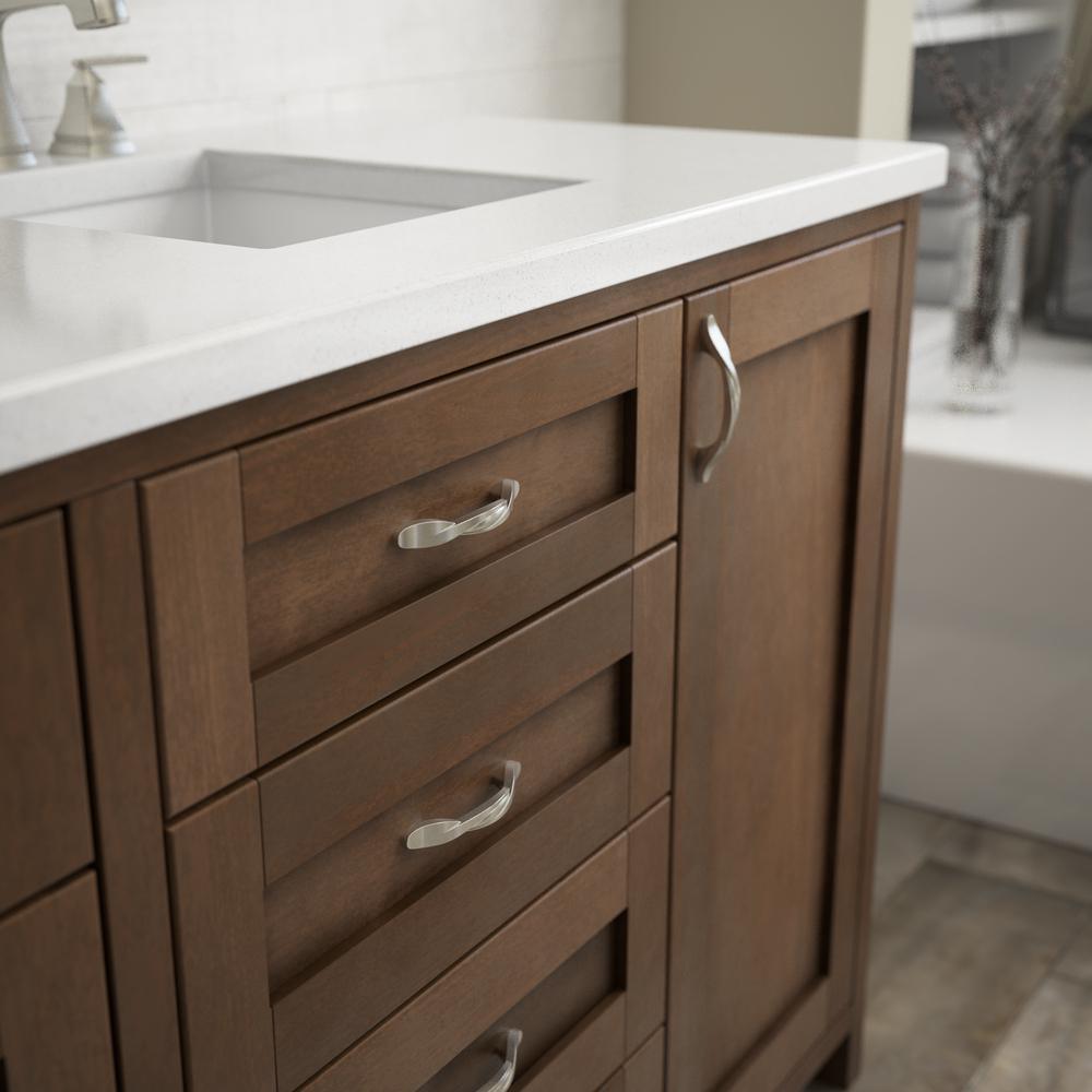 Add a touch of simple elegance to your kitchen or bathroom by adding decorative hardware from Liberty. The graceful curves of this pull are a subtle way to enhance the classic design of your kitchen or bath. The crisp Satin Nickel finish complements a wide variety of painted and wood finishes.