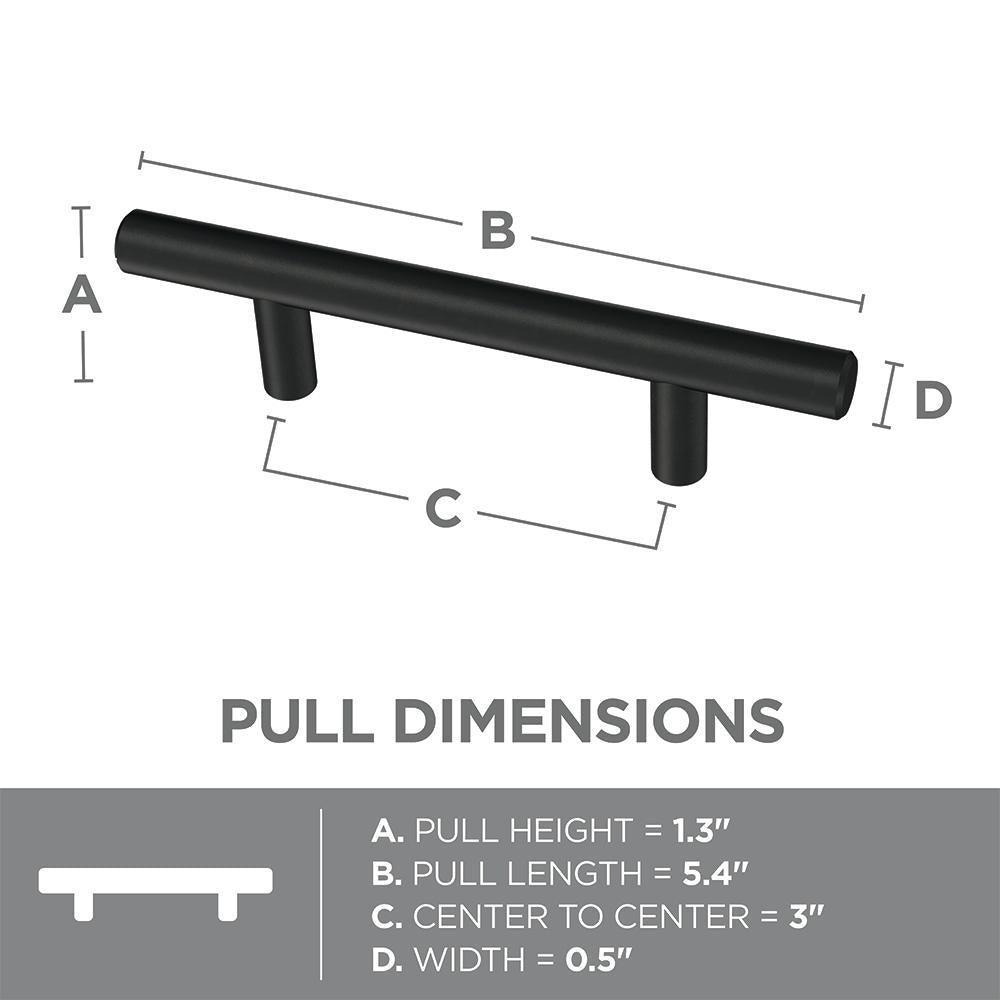 3 in. (76mm) Center-to-Center Matte Black Bar Pull (10-Pack)