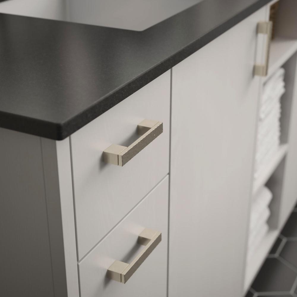 • Modern dual mount pull is perfect for 3 in. or 3-3/4 in. drilled holes and gives a sleek contemporary update