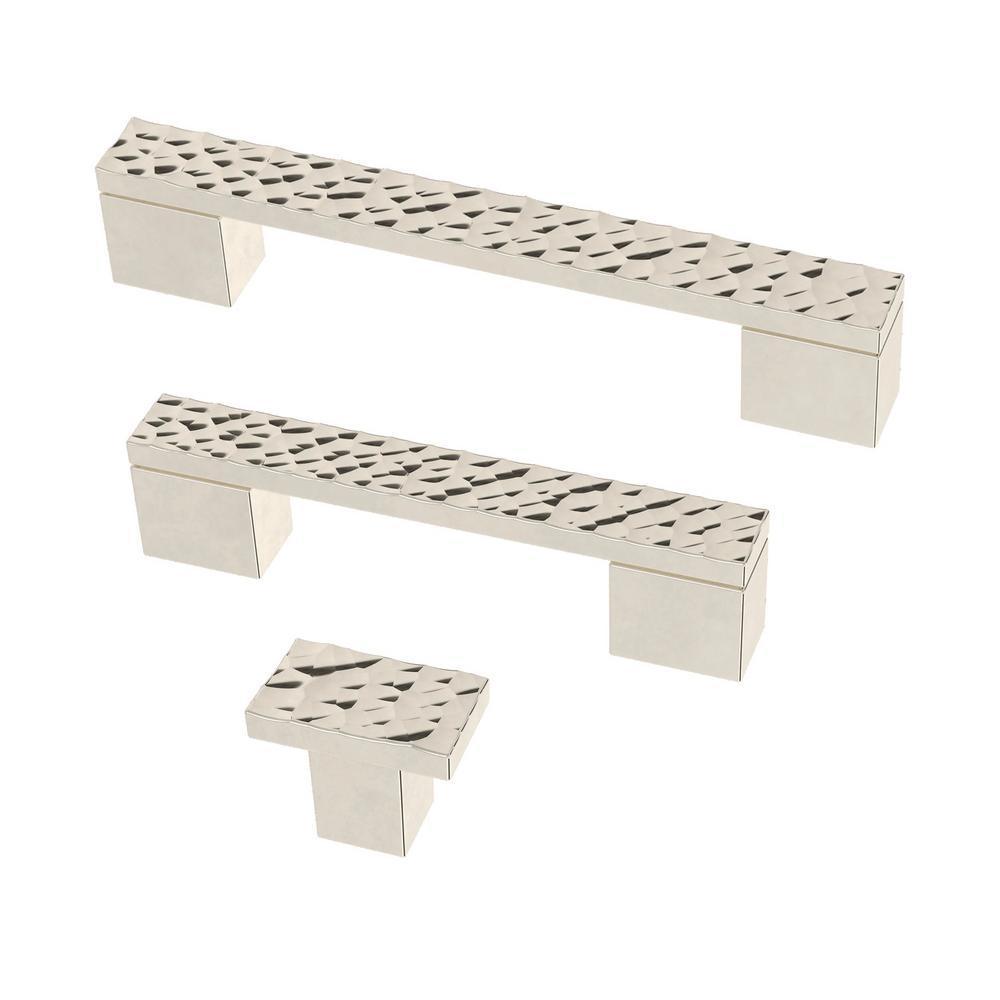 Modern Hammered 3 in. or 3-3/4 in. (76 mm or 96 mm) Polished Nickel Dual Mount Drawer Pull