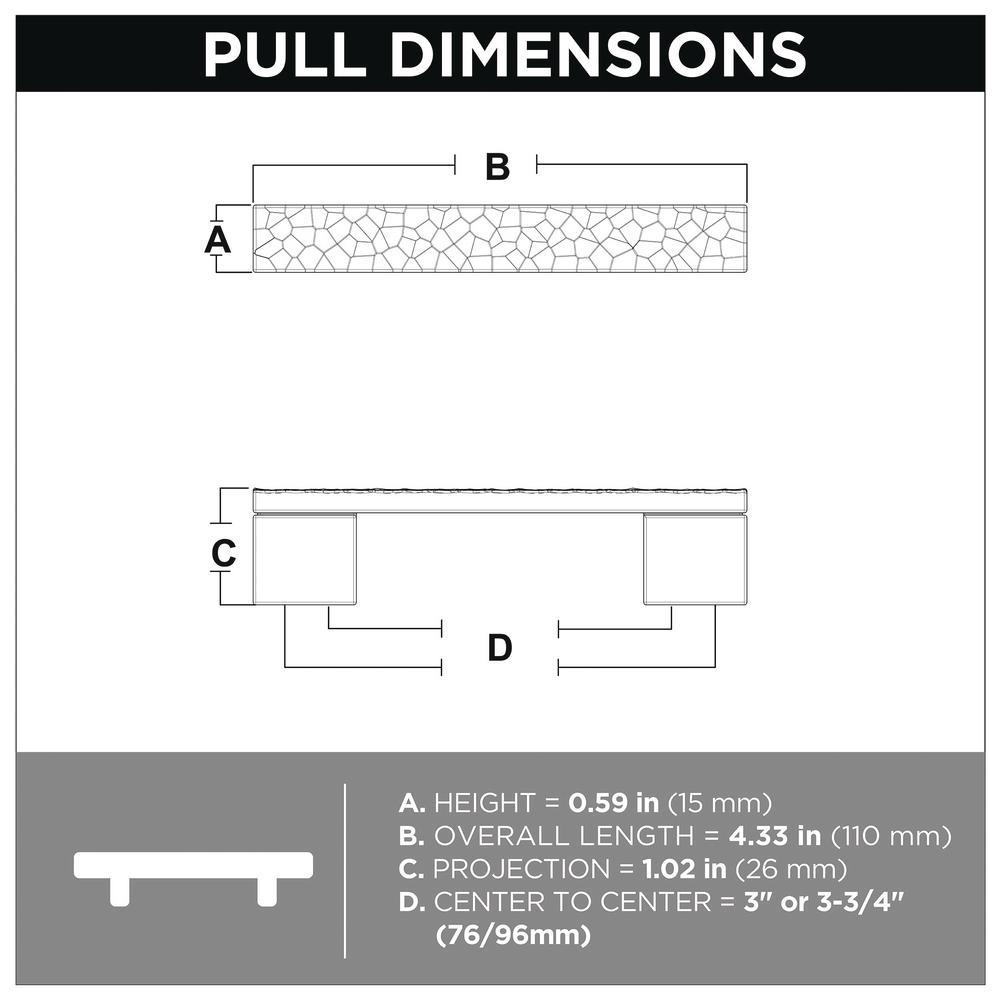 From Liberty, the Modern Hammered 3 in. or 3-3/4 in. dual mount drawer pull blends artisanship with contemporary style, perfect for your kitchen or bathroom cabinets. The subtle hammered texturing merged with sleek bold lines gives your cabinets a modern, yet approachable look and feel. A knob and additional dual mount pull lengths are available in this collection.