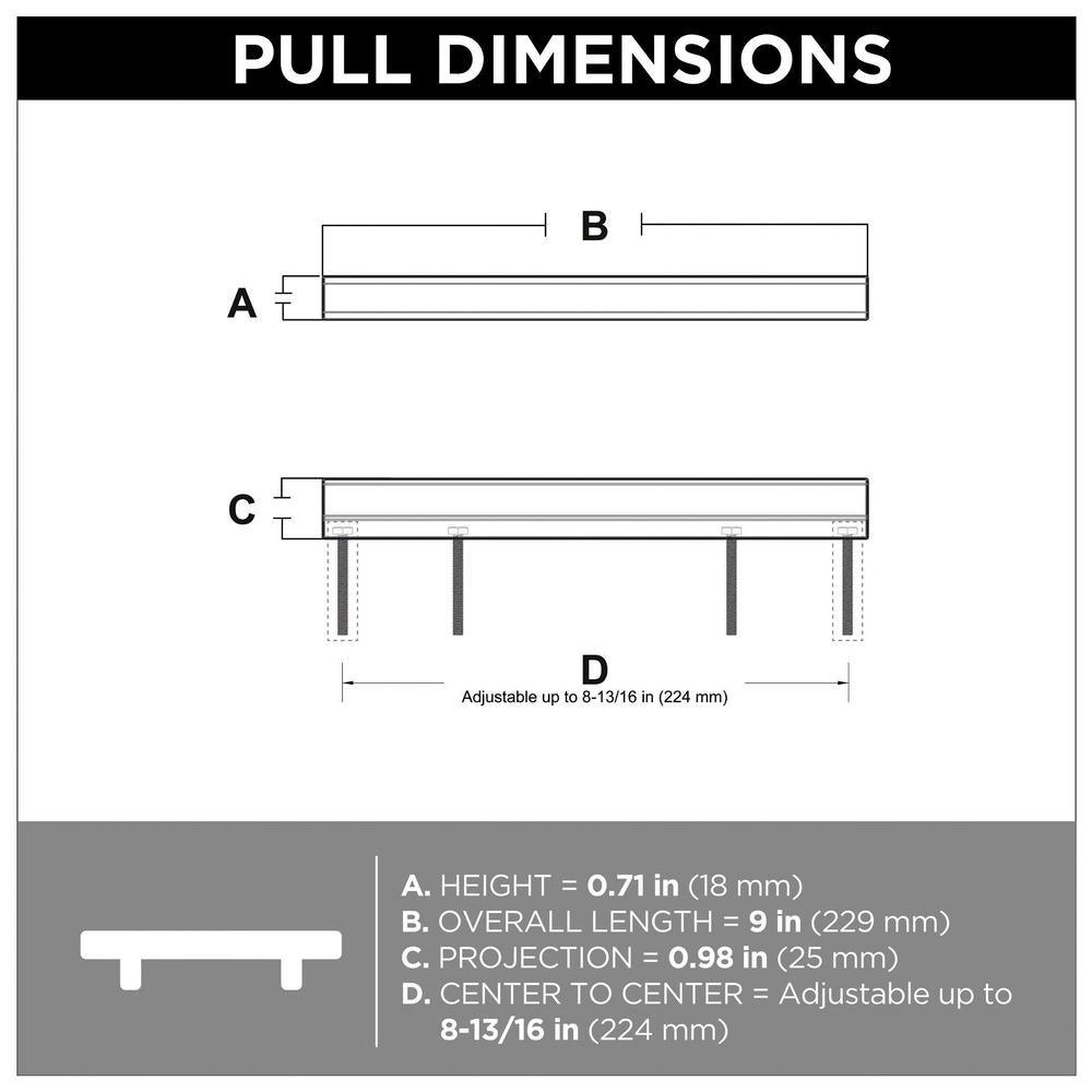 • Flexible sizing allows this pull to fit a wide range of center-to-center mounting requirements up to 8-13/16 in.