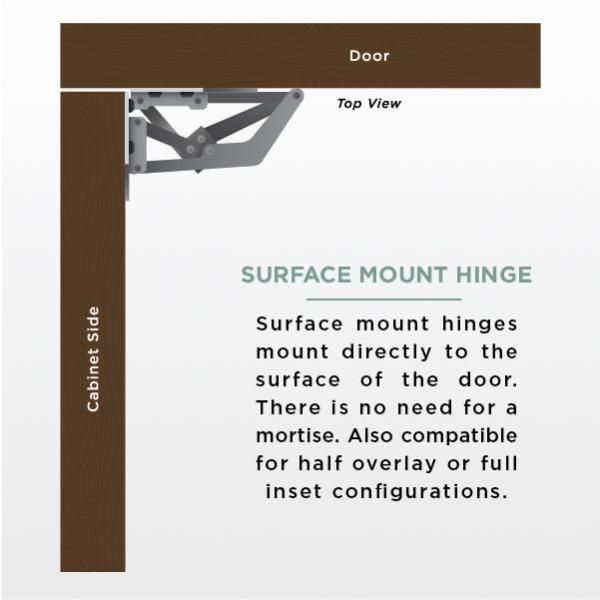 Modern function meets versatility with the Non-Mortise Concealed Hinge from Liberty Hardware. These 90° hinges can be configured in three different ways and are surface mounted for risk free installation. Internal springs ensure that cabinet doors stay firmly closed.
