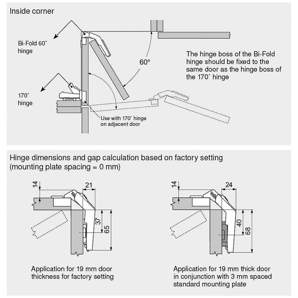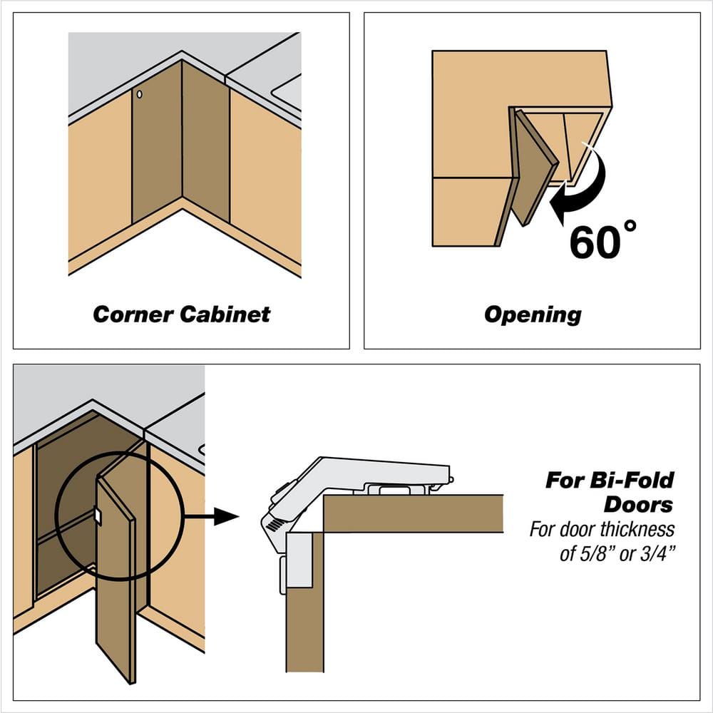 • Bi-Fold Corner Application: Optimizes corner cabinet access with a 60° opening angle