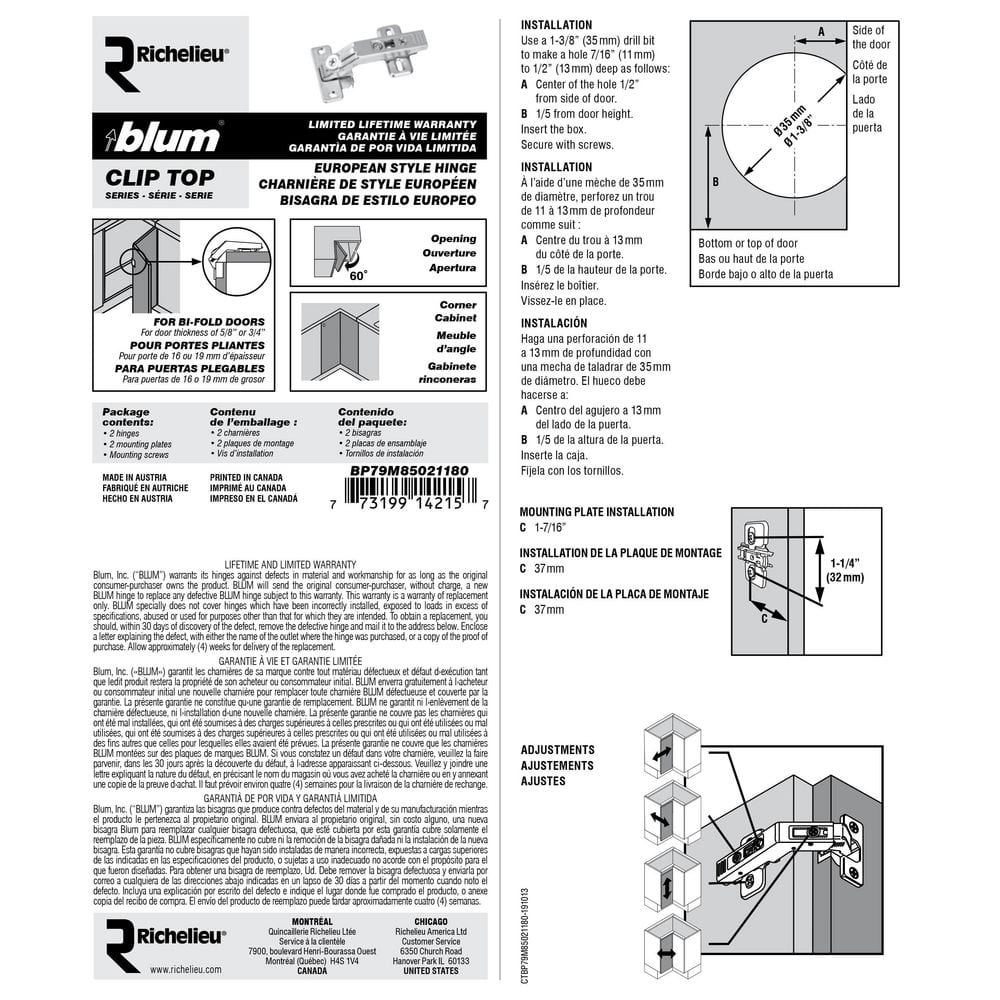 Upgrade your corner cabinet access with Blum’s easy-adjust, clip-on bi-fold hinges—order the 2-pack today.